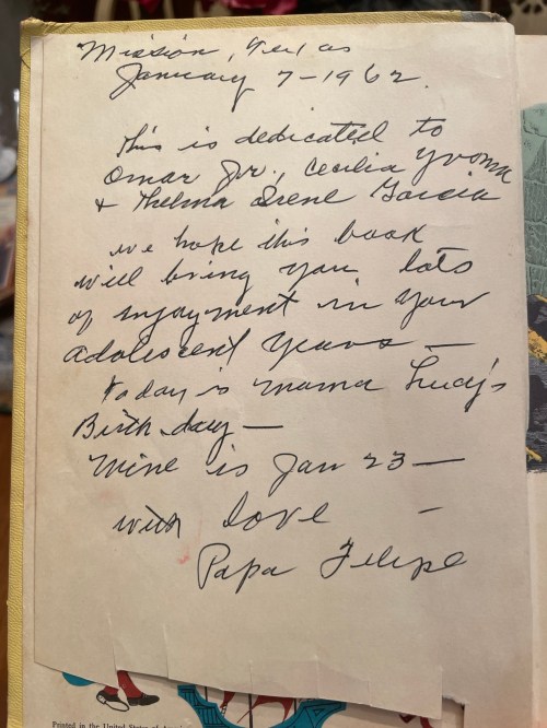 My grandfather, perhaps unintentionally, gave us another gift — one that means more to me now than when I was a child. In the flyleaf of each book he wrote love notes to his grandchildren. Instead of letting the blank real estate at the front of each book go to waste, he used his Sheaffer fountain pen to give the words in his heart a home on the page.