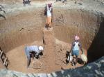 Located near the kitchen is our new water-well. The water-well diggers have been working daily to dig this fifteen-foot diameter well. This is hard work. The diggers are working with hand tools and using baskets to haul away the dirt. Once it is completed,  the walls of the well will be lined with rocks. This water-well will keep our campus supplied with fresh drinking water as well as water for bathing and for the irrigation of our garden.