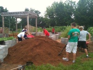 Today our students helped Kingsland volunteer Charlie Matcek harvest 35-pounds of peppers. Charlie works at the garden every week and absolutely loves it. Our students also did some maintenance work on the paths that surround the beds by spreading and compacting ten yards of crushed granite and pulling weeds. Our kids worked hard. And, they had fun while working. They smiled and laughed as they shoveled and hauled wheelbarrows laden with crushed granite under overcast highs and high humidity. They never slowed down! I’m proud of our students and their service to our community today. It will be exciting to see how God continues to use these young boys and girls as they continue to grow up in an environment where they are taught to love and serve others and to work to improve our community. Next week our High School students will serve Bhutanese refugees who live in Houston. I am confident that God will continue to build the hearts of our students as they continue to work their muscles by serving others.