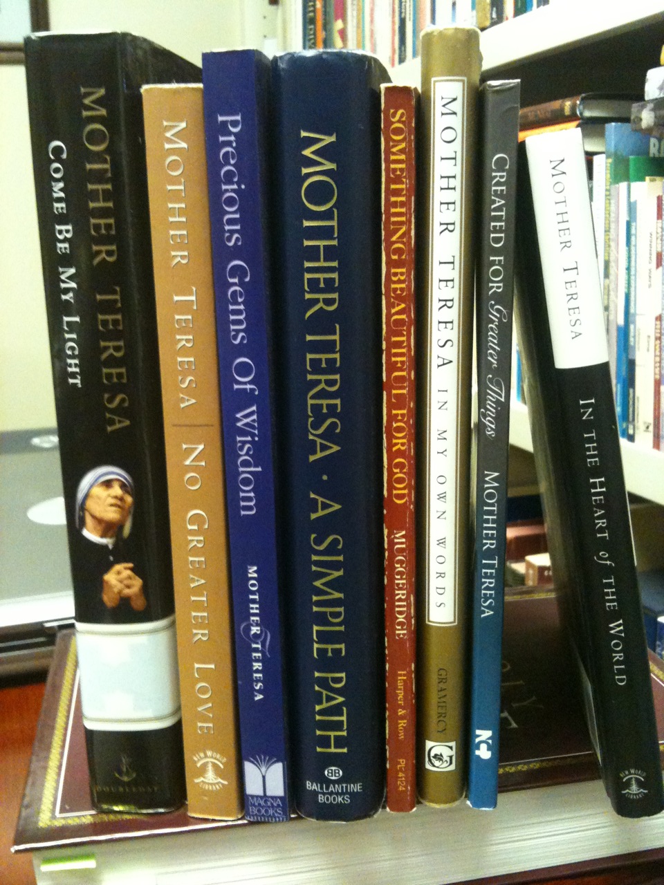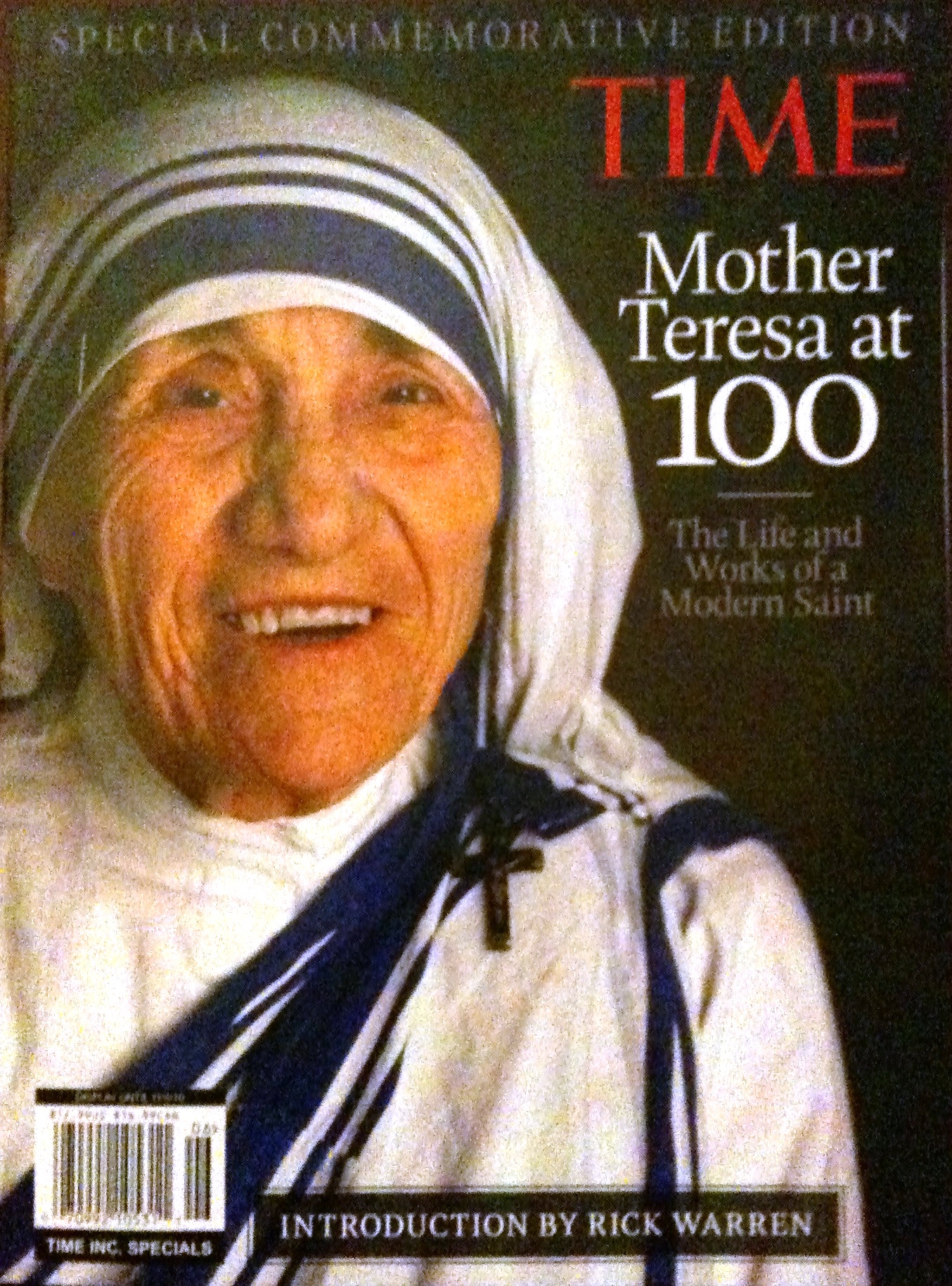 I first read about Mother Teresa in the December 29, 1975 issue of Time magazine. This issue was titled “Living Saints: Messengers of Love and Hope” and featured the image of Mother Teresa on the cover. I was so inspired by what I read that I saved that issue of the magazine and still have it. Over the subsequent years I watched Mother Teresa’s selfless life unfold on the world stage. While in Nigeria in 2008, I stopped at a bookstore to purchase something to read on the long flight home. The shelves of the bookstore were sparse but they did have a copy of Mother Teresa: Come Be My Light, a biography based on a collection of Mother Teresa’s letters. So, I purchased and read this book on the flight home. This was the first of several books about Mother Teresa that I purchased and read.