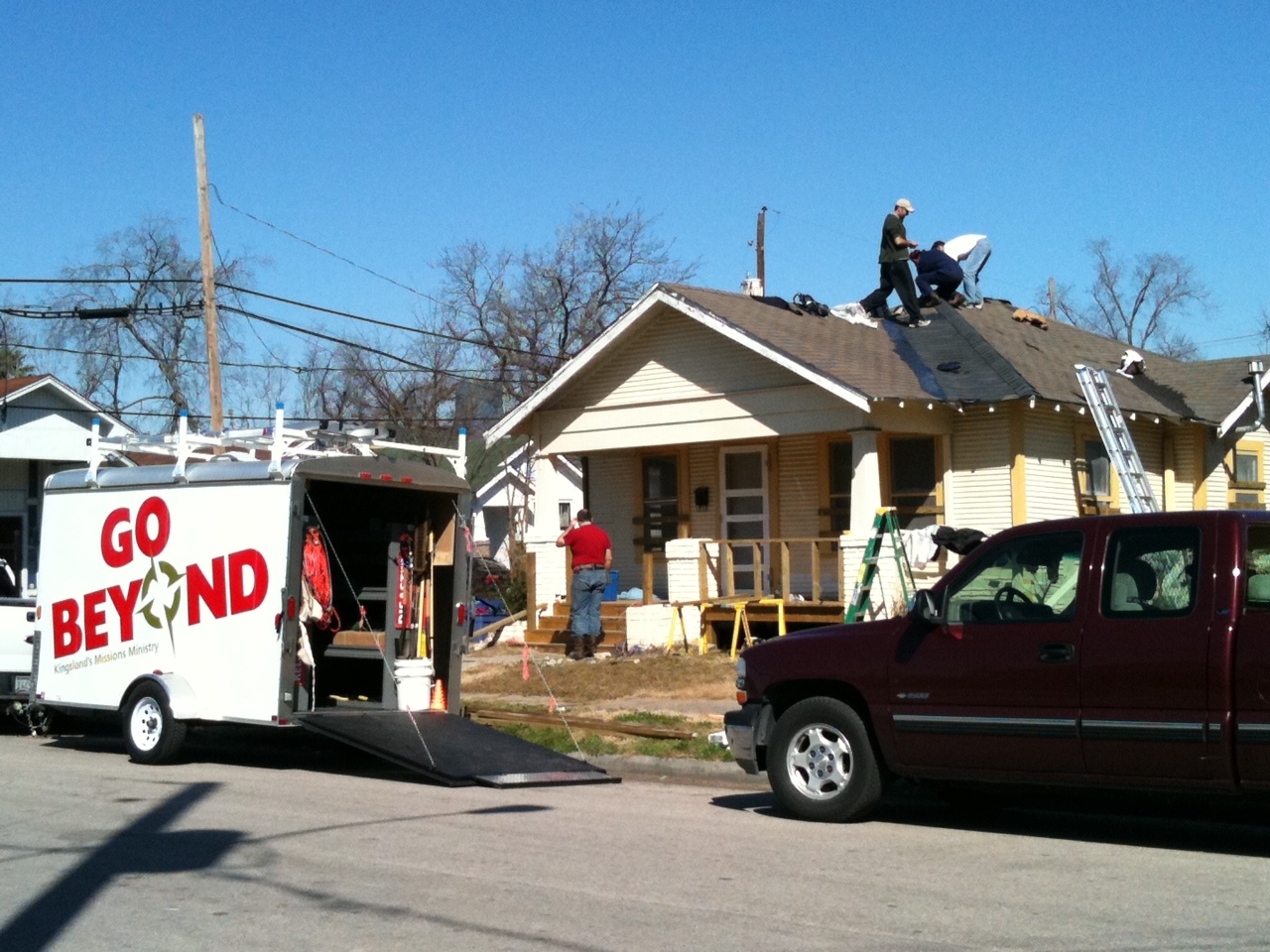 Our missions ministry has been engaged in serving Houston’s inner-city neighborhoods for the past five and a half years. In that period, we have mobilized thousands of volunteers and invested countless hours serving people in need. We have also developed some great partnerships with those who serve and minister in Houston’s urban areas. One of our favorite partners is Mike Malkemes, founder of Generation One, a ministry that reaches out to kids at risk and works to help them realize their potential. Mike keeps us aware of opportunities to partner with Generation One to repair homes, clear lots, demolish crack-houses, tutor kids, assist the elderly, and more. This past week, Mike invited us to assist three families in need in Houston’s Third Ward. Kingsland’s Outfitters Adult Bible Fellowship was scheduled to serve today and showed up early to care for these families.