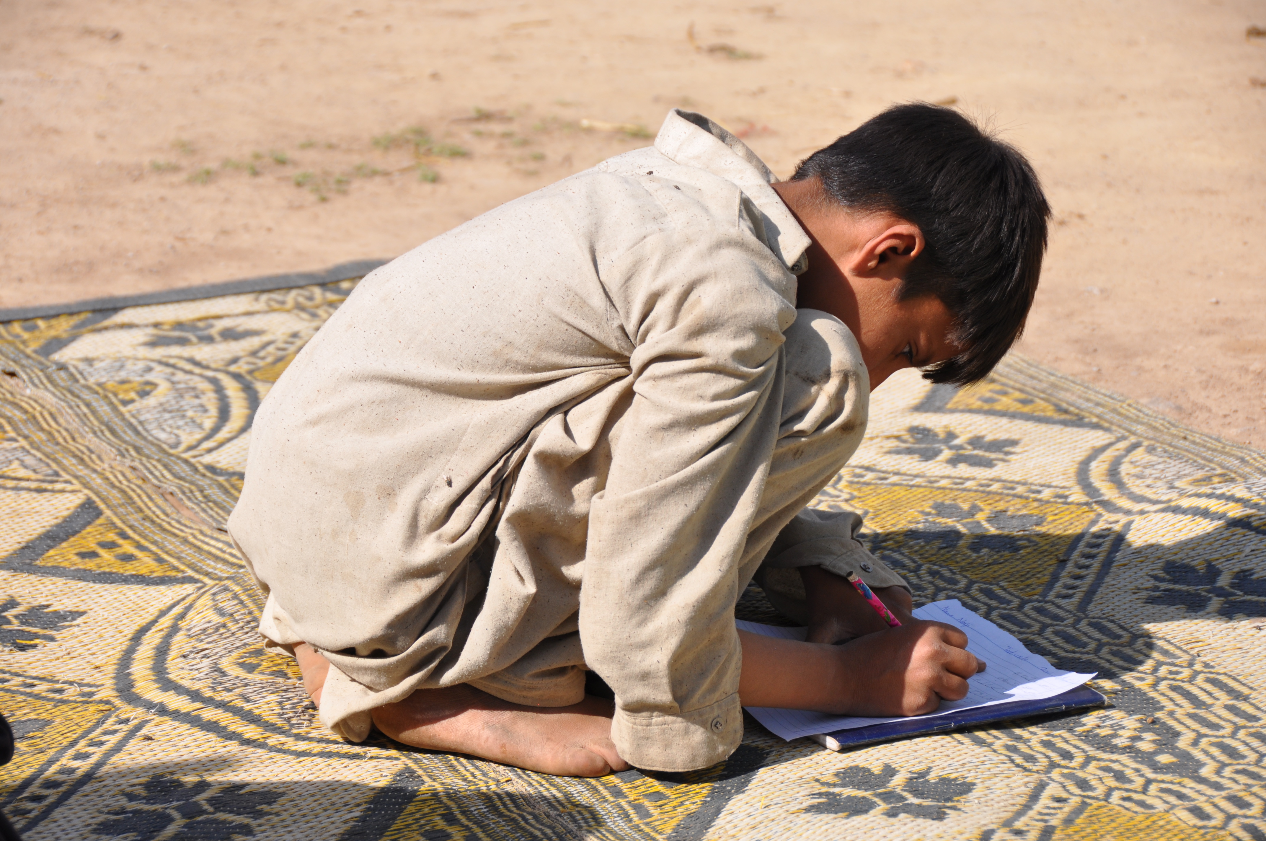 Emily encountered numerous challenges when she started her work among the Gujjars. Initially, the Gujjar leaders objected to their children receiving instruction from a Christian woman. Then, she found that many families discouraged their kids from learning how to read and write, choosing instead to have their kids help with numerous daily chores. However, Emily did not lose heart and her persistence eventually paid off. Five days a week for the past fifteen months she has patiently taught her Gujjar students how to do math and how to read and write Urdu. She carries all of her school supplies in a red laundry basket and sets up her outdoor classroom every morning. When she arrives, the Gujjar kids flock to embrace her and sit with legs crossed on a large woven mat as she begins the day’s lesson.