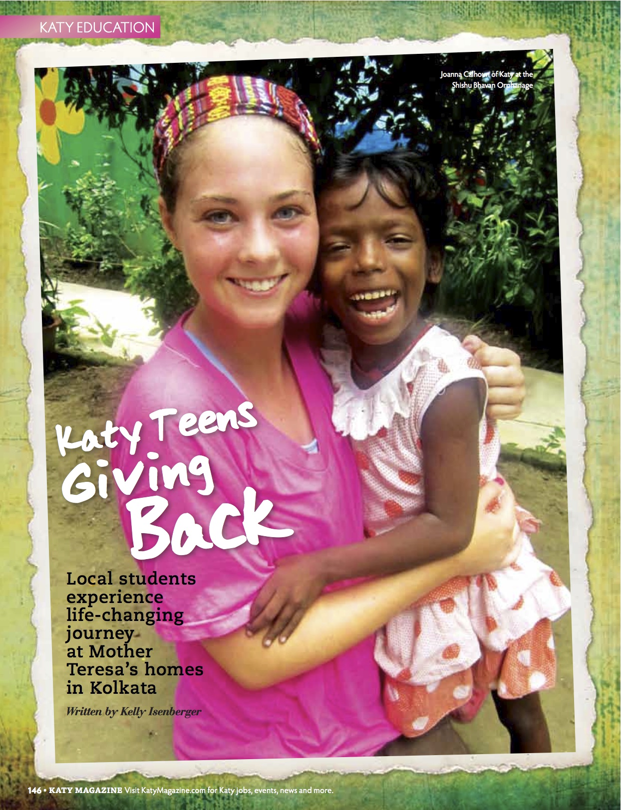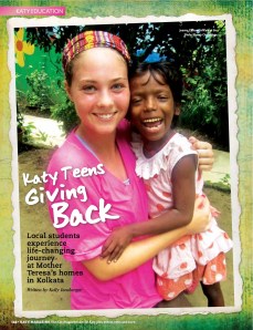 The past two summers I have been privileged to lead Kingsland’s high school graduates to Kolkata to serve the lowest and most broken segment of humanity. Our students have embraced the privilege of serving the least of these and faced every challenge in doing so with courage. Their experiences have caused them to think a little more deeply about their responsibility to care for those in need — to move beyond pity to practical and measurable acts of compassionate service. Even a brief season of service at Mother Teresa’s homes is enough to leave an indelible mark on the hearts of those who serve. The experience is one that will be remembered for a lifetime. This month’s issue of Katy Magazine features an article by Kingsland member Kelly Isenberger about our recent summer trip to Kolkata entitled Katy Teens Giving Back. I hope you will take a moment to read it and to consider what you can do to serve the least of these in our own community and beyond. I appreciate our teens and their service from Katy to Kolkata. I’m already looking forward to returning to Kolkata with our graduating teens in the Summer of 2012.