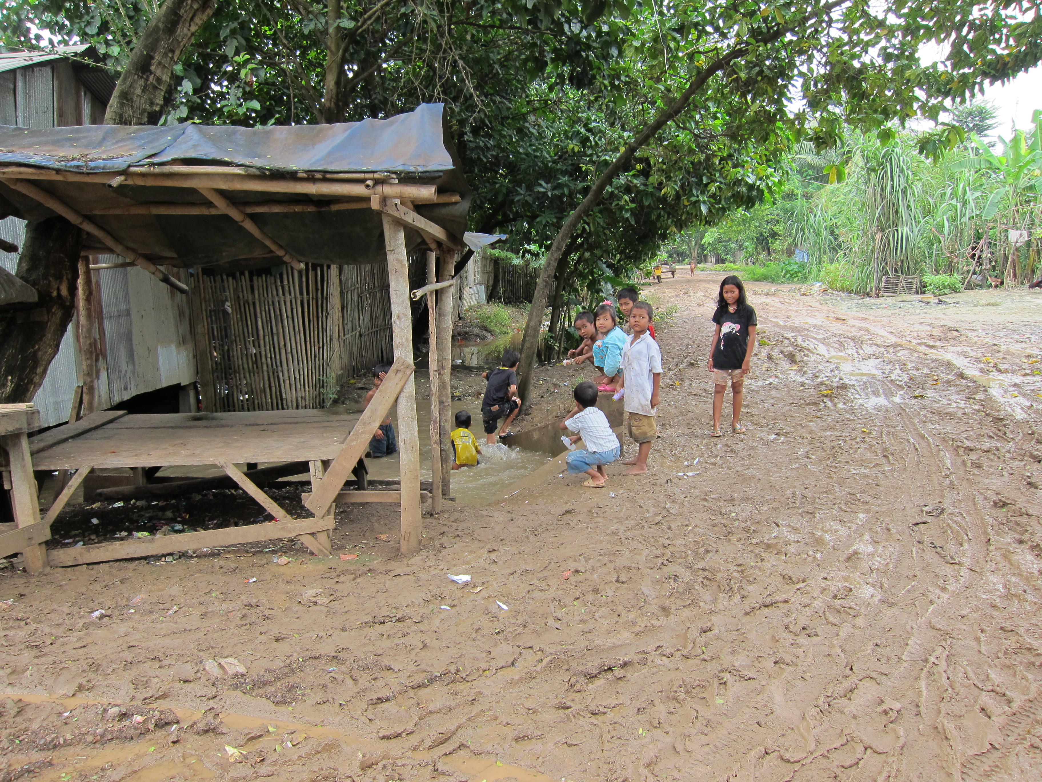There is nothing quite like the sounds of children having fun. Over the years I have visited kids living in the most extreme conditions — from the IDP camps in Darfur to the slums of Kolkata to the steppes of Mongolia and other places around the world. Somehow, kids find a way to laugh and giggle and to entertain themselves in spite of the poverty that surrounds them. They demonstrate a remarkable resiliency and capacity to adapt to life with little or nothing. The kids we have worked with this week in Poipet are among the poorest I have seen. They live in ramshackle hovels on unpaved roads covered in slimy mud during the rainy months. We are here in the middle of the rainy season and I have never seen so much mud in all my life. I can’t imagine living in these conditions for months at a time much less for a lifetime. But, in spite of these wet conditions, kids are kids — and mud and murky brown pools of water offer opportunities for fun and adventure.