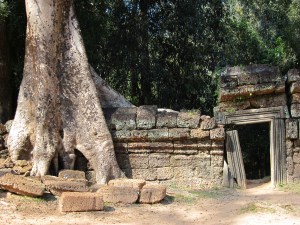 This afternoon, while walking through Ta Prohm, one of the ancient temples in the Angkor complex located near Siem Reap, I took a photograph of a door I had not seen on my previous visits. I lingered for a moment as I wondered about all of the people throughout the centuries who had walked into and out of Ta Prohm through that particular door. Today the door is buckling under the stress created by a massive silk cotton tree. These trees are slowly swallowing and reclaiming this ancient site. Nevertheless, this door remains open and functional. Perhaps one day soon it will surrender to the assault of the silk cotton trees and crumble like so many of the surrounding structures in the complex. Until then, it remains an open door — a silent invitation to go beyond the threshold to engage the world.