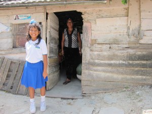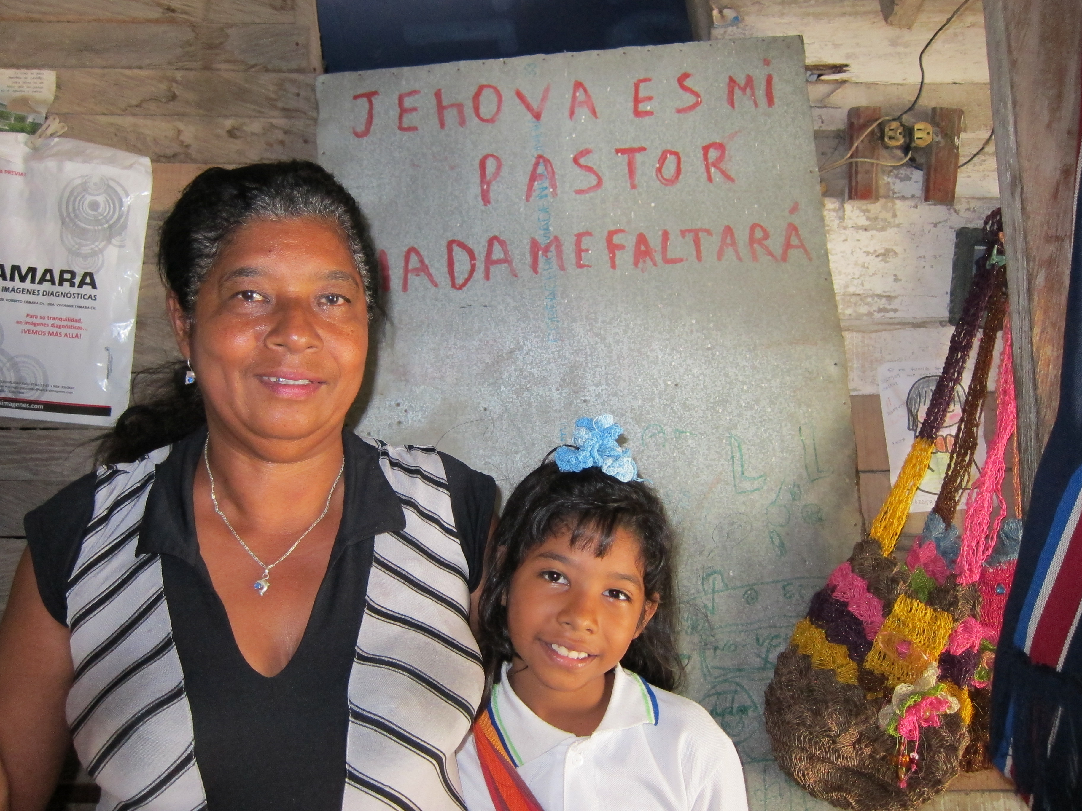 This morning we visited the families of three of the children enrolled in the school. I am very acquainted with poverty and therefore was not surprised by the horrible living conditions around the school in Barranquilla. But, what makes things different here is the hope that these parents have for their kids. I met one grandmother who is caring for her only granddaughter. Her home was the worst of those we visited. “It’s staying up by the grace of God,” she told us. And she was right! It’s only a matter of time before her tiny hovel crashes in around her. This grandmother started a little business selling chips and candy in order to pay the modest monthly tuition for her granddaughter who is an excellent student. Before we left I took their picture in front of a sheet metal door in their home painted with the words “Jehová es mi pastor; nada me faltarᔓThe Lord is my shepherd, I shall not want.” This woman knows the meaning of those words. She trusts God daily to help her keep her granddaughter in school.