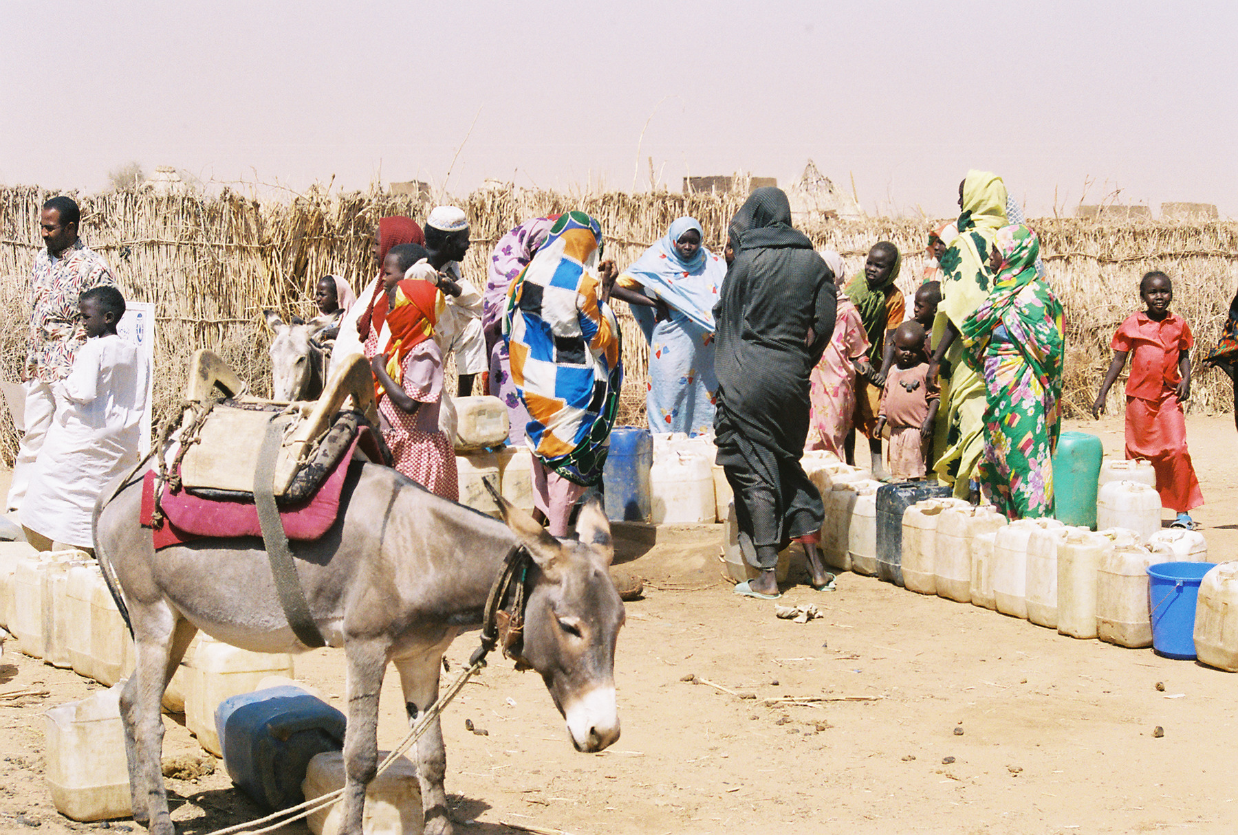 In the winter of 2004, I visited the Abu Shouk and Zamzam camps for internally displaced peoples in Darfur, Sudan. The triple-digit heat there is the worst I have ever experienced. No relief day or night. It was like living in an oven. One of my most vivid memories is of the numbers of women in queue to get water at the few wells that serviced these camps. The women waited long hours in the unrelenting heat in order to fill plastic jugs with water and then carried these heavy containers to their make-shift homes. This is a grueling but necessary daily task in order for the displaced peoples in these camps to survive.