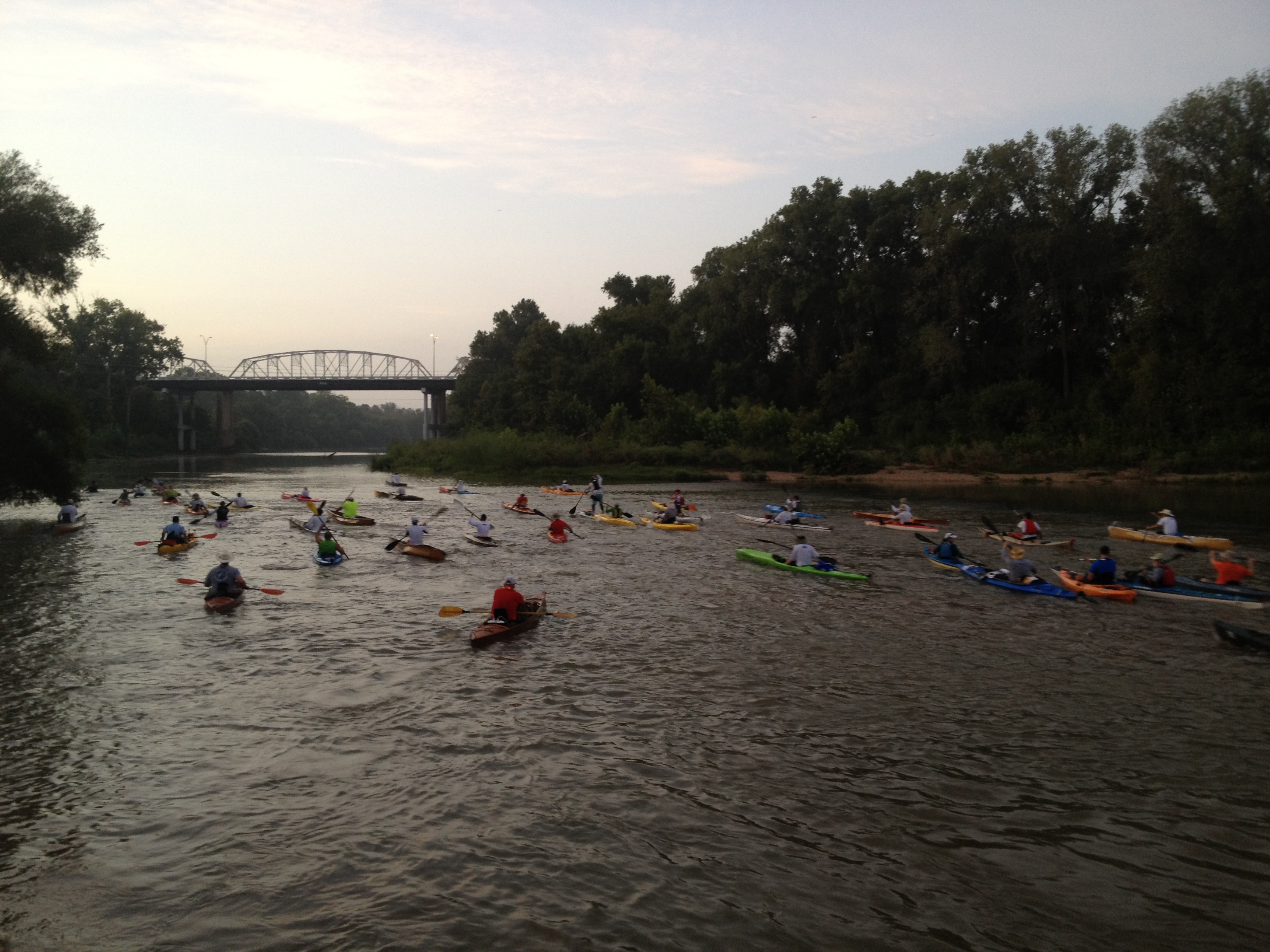 The hydrilla along the Colorado River presents a challenge to canoeists, kayakers, and boaters. The stuff will either slow you down or stop you cold in your tracks if you fail to navigate around it. It’s hard enough trying to avoid it in the daytime, but almost impossible to do so at night. The low water level and the hydrilla-ridden obstacle course made the race tougher even for experienced canoeists and kayakers. As a novice, it beat and whipped me to the point of frustration and exhaustion, but Jonathan and I still made it to the finish line.