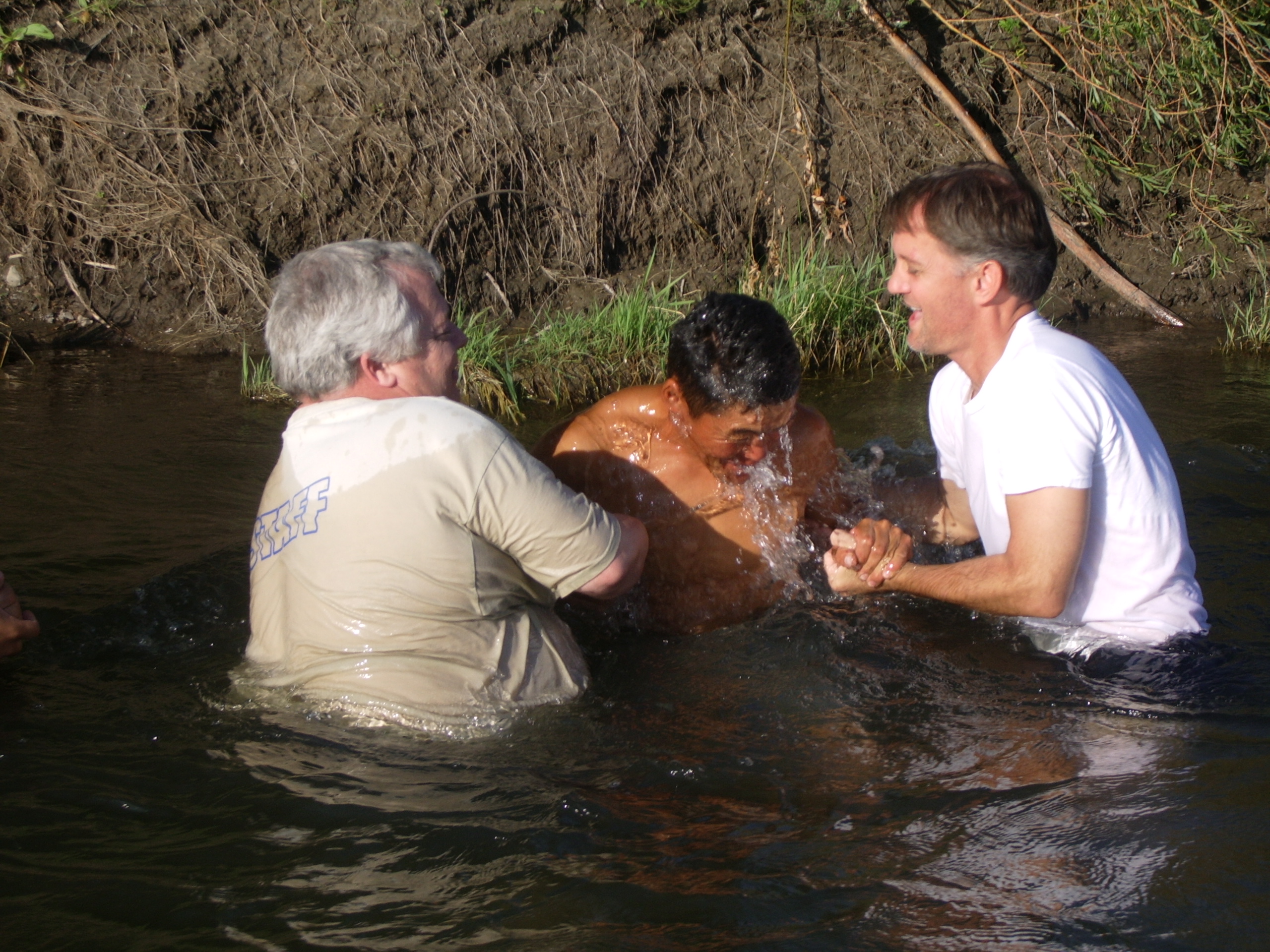 With Jerry Smith, baptizing a new Mongol believer. | 2005 | Darkhan, Mongolia