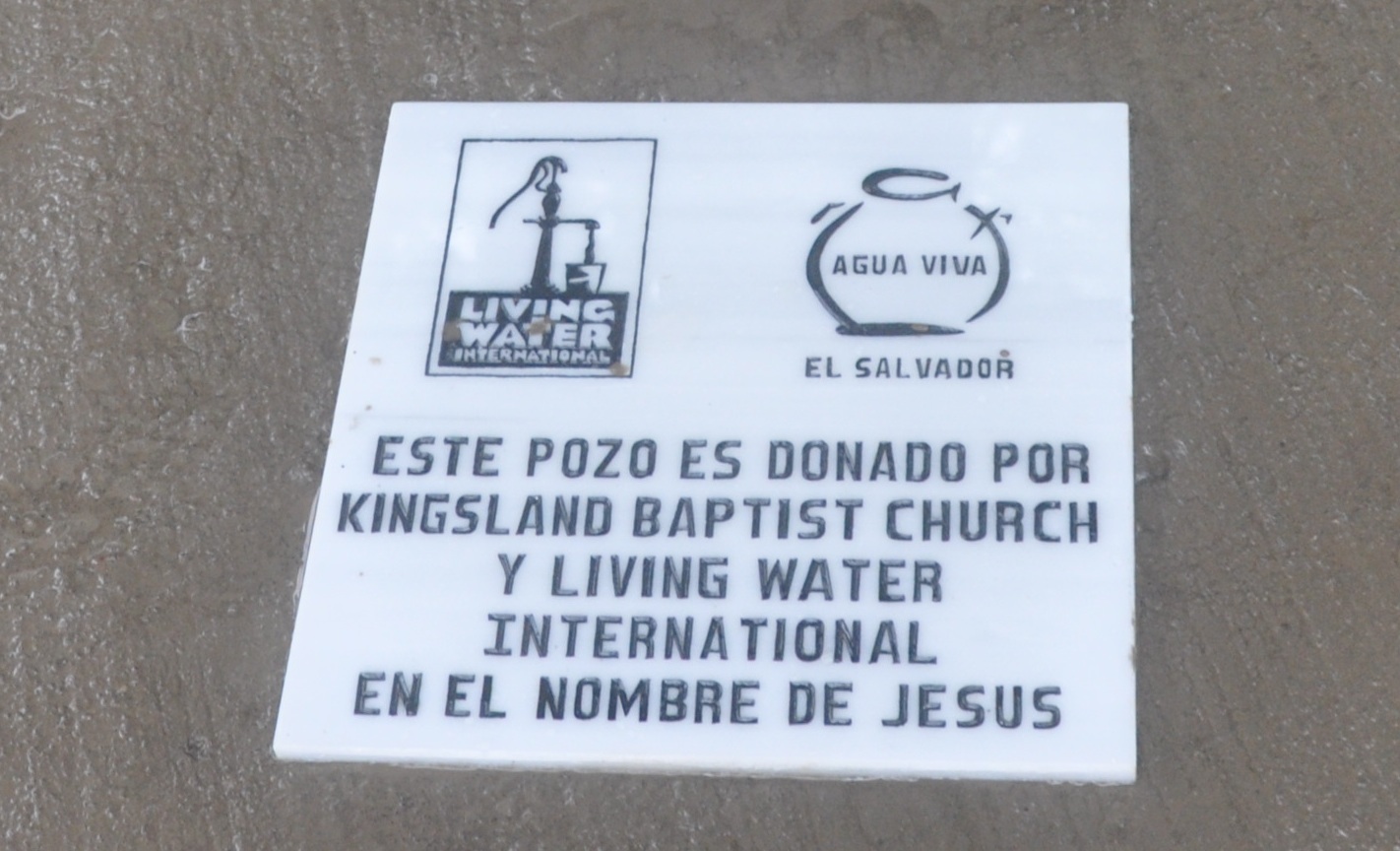 The dedication plaque on Kingsland’s seventh water well in El Salvador.