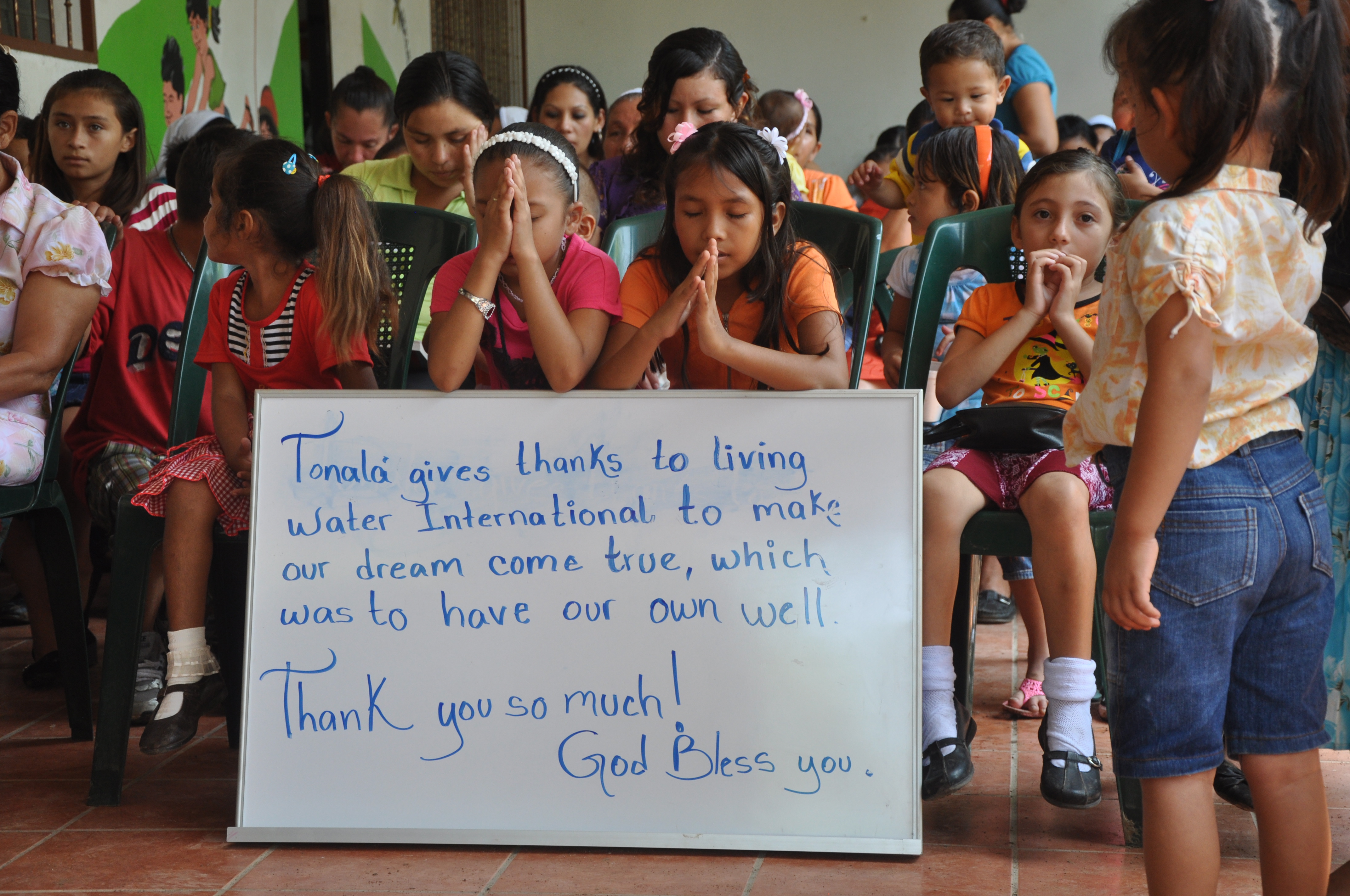 Girls praying at dedication ceremony.