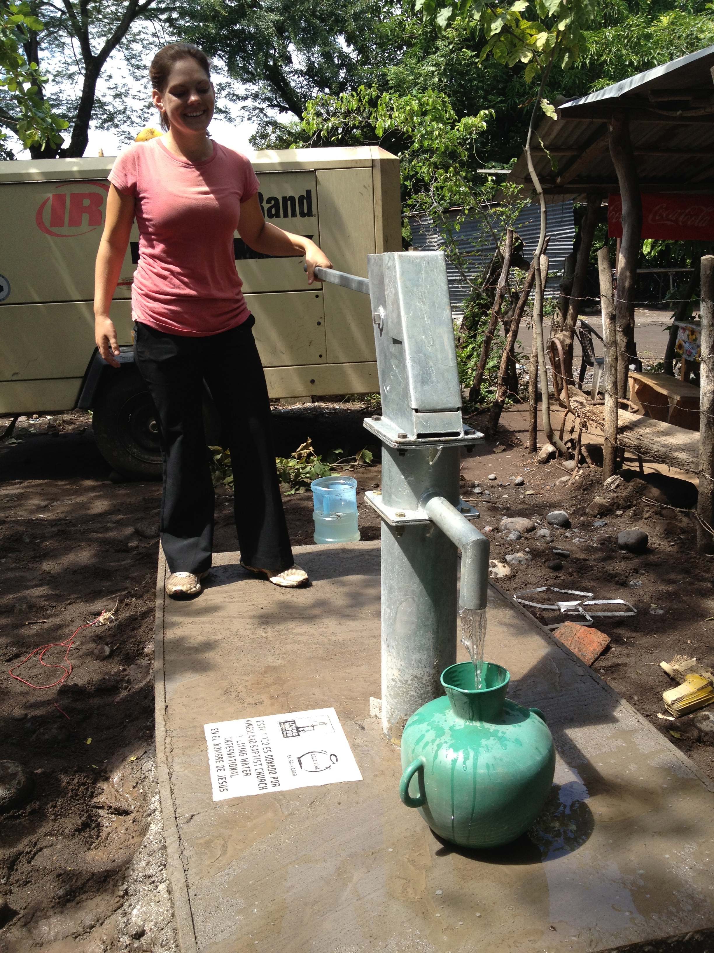 Marie, the only girl on our team, pumped the first gallon of water.
