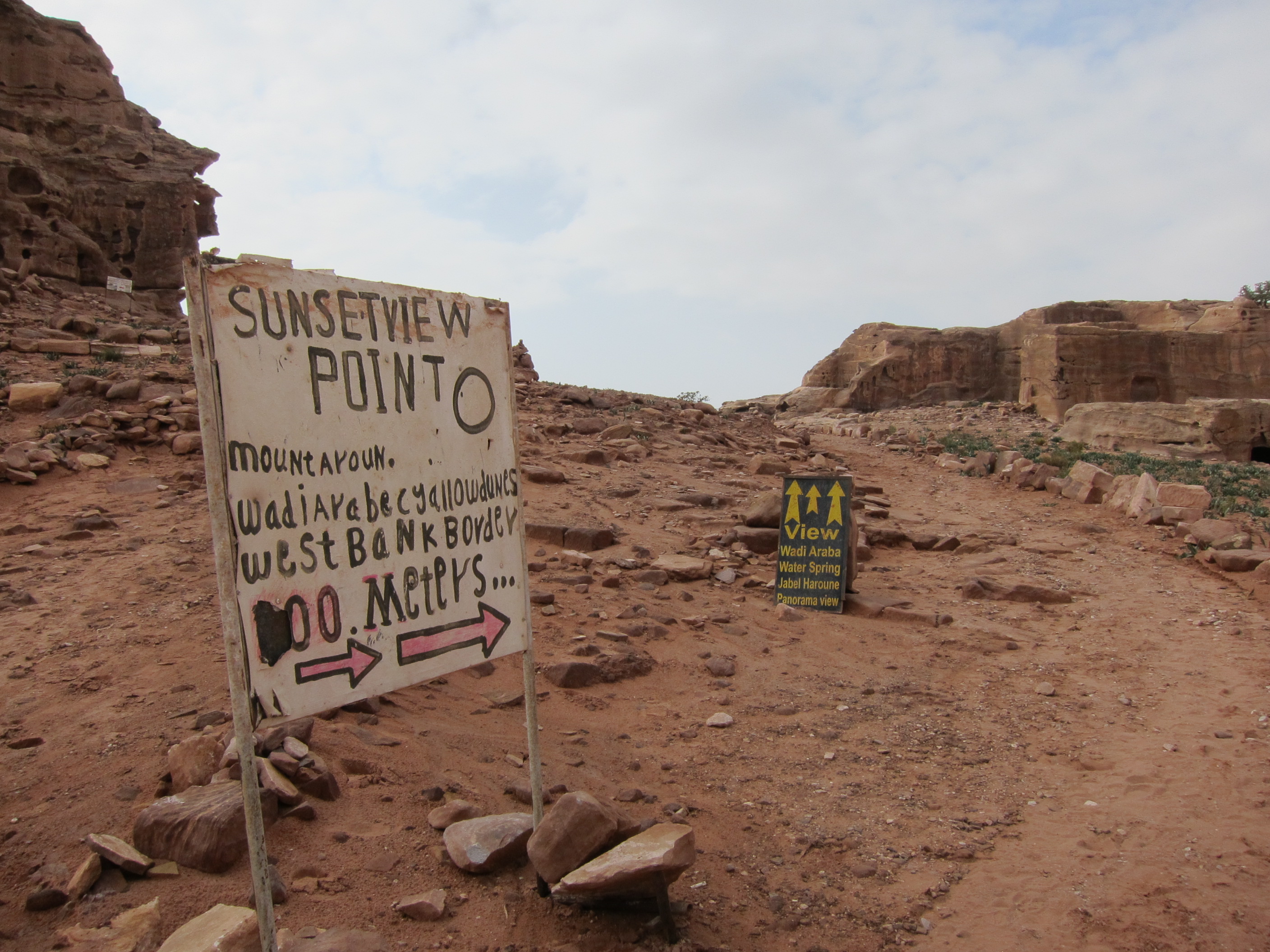 On my recent visit to Petra, my friends and I rode donkeys to El-Deir, the monastery carved into the rose-colored sandstone hills at Petra’s highest point. Just a short walk from the monastery is a hand-painted sign that beckoned us to go higher — to the “Top of the World,” an opportunity that we could not pass by.