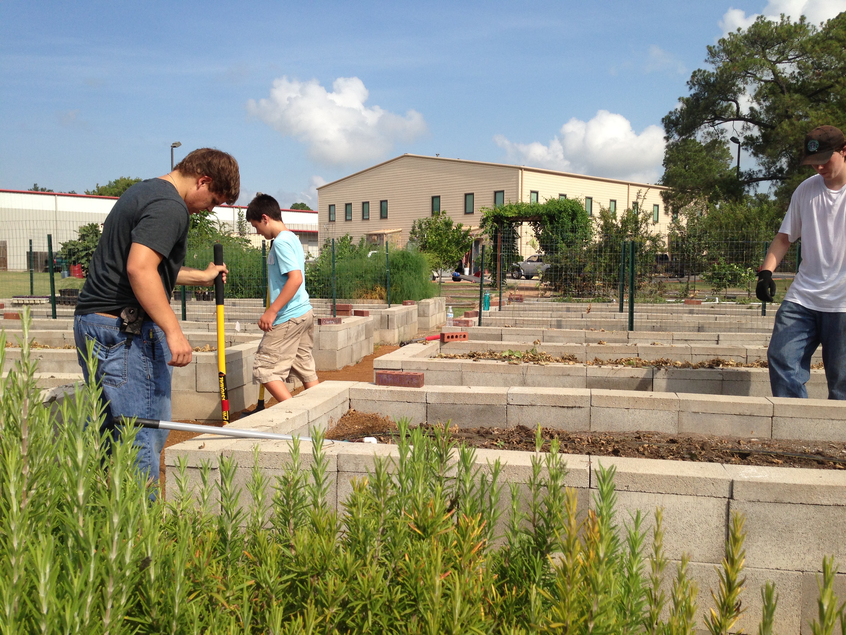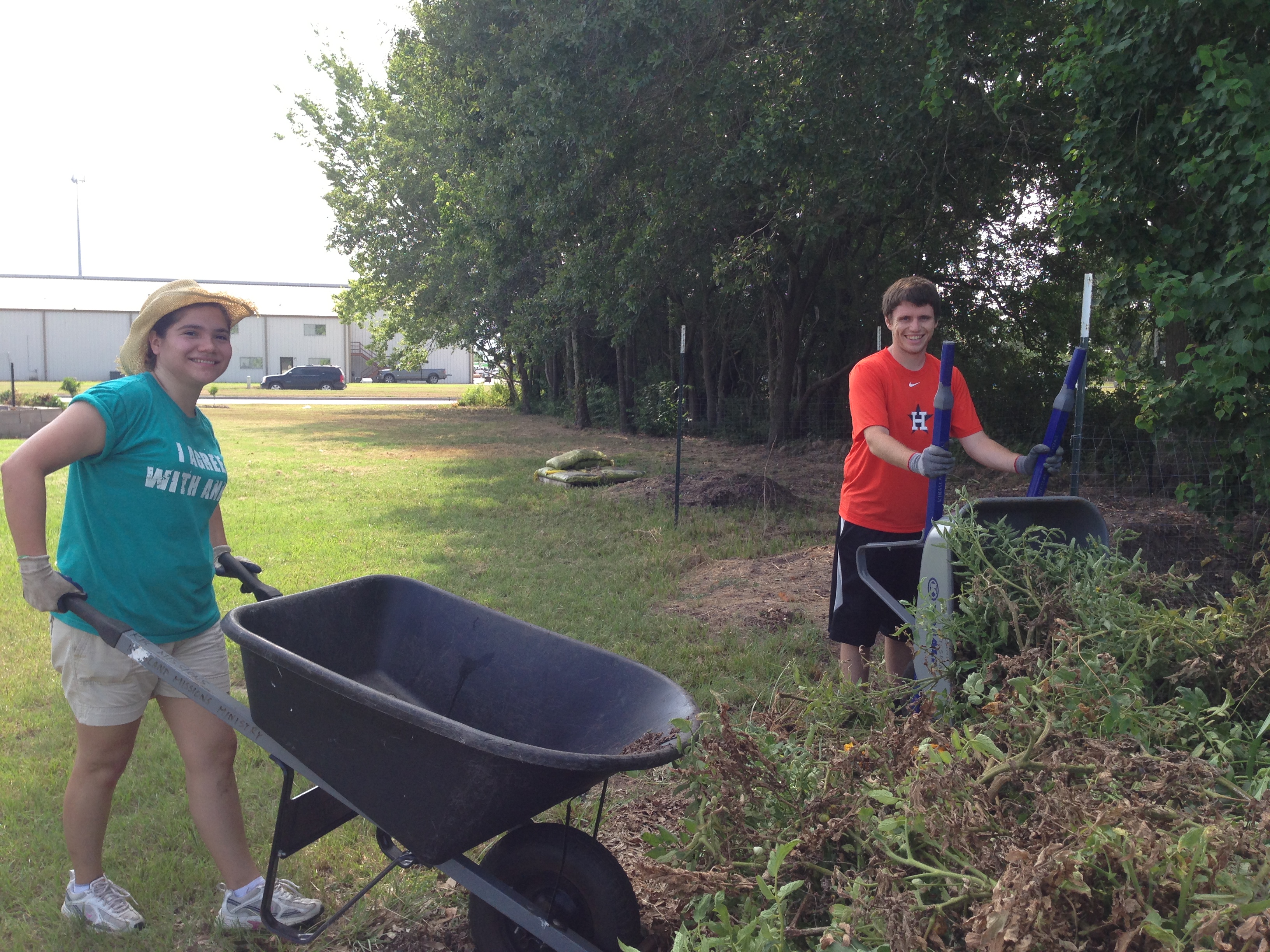 Yesterday morning, several Kingsland volunteers met at the garden to prepare the beds for the next round of vegetables. That meant removing the old plants, adding planting mix and manure to the beds, and tilling the soil. These tasks were made a bit more challenging because of the 100-plus degree temperature. It doesn’t take long working in the intense Texas heat to feel your energy ebbing away with every drop of sweat.