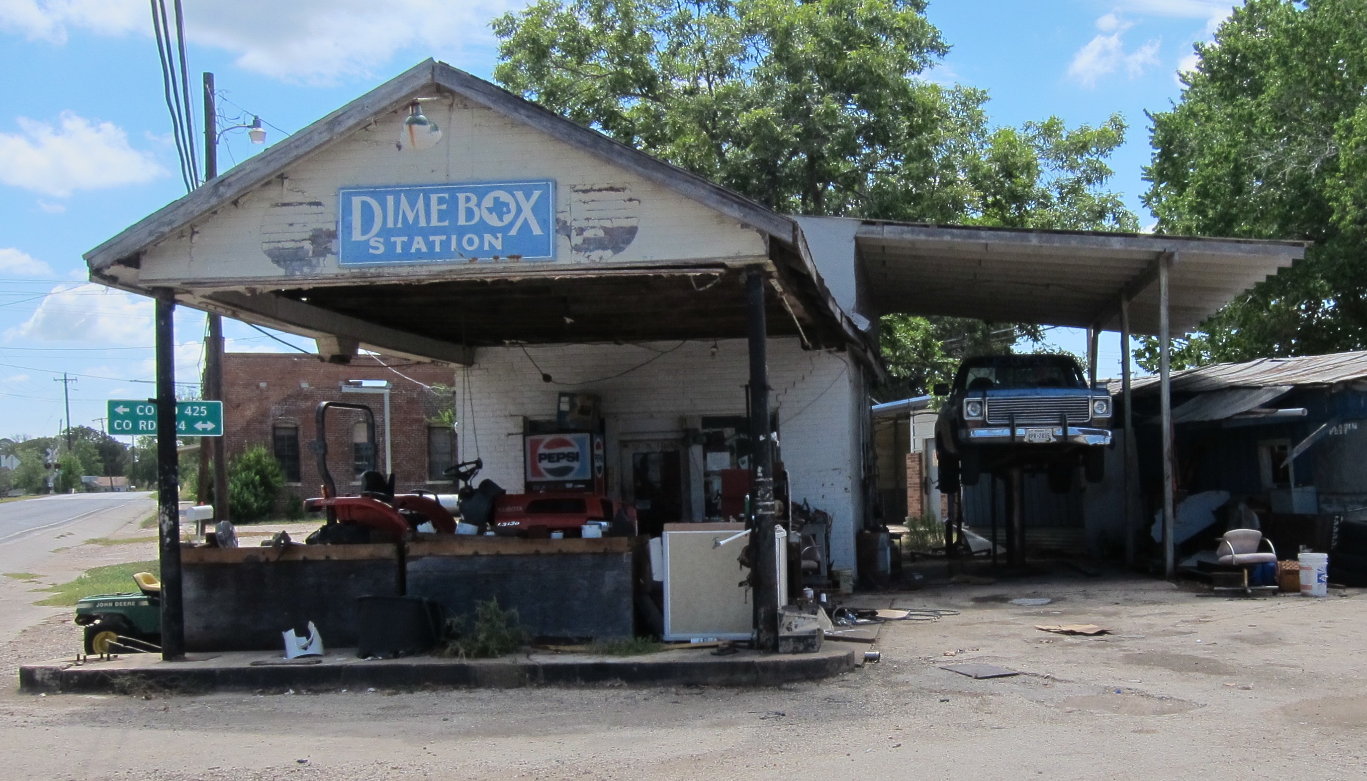 IMG_1216In 1913, when the Southern Pacific Railroad built a line three miles from Dime Box, the folks there moved closer to the railroad. The original settlement became known as Old Dime Box and the new one became known as Dime Box. The railroad brought in new settlers and, at its peak, the population of Dime Box grew to five-hundred. The population has since declined to a little more than two-hundred people.