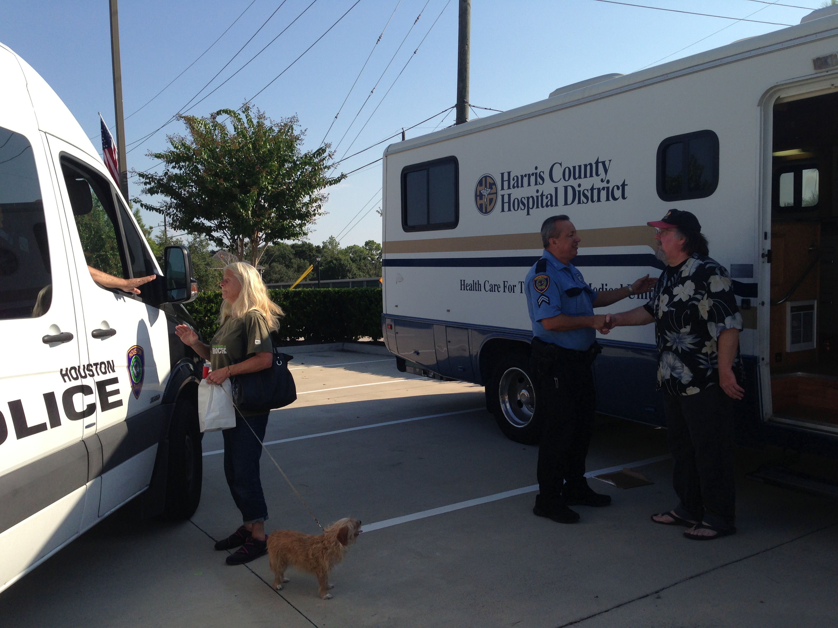 Our missions ministry has a strategic partnership with HPD’s Homeless Outreach Team and the Harris County Hospital District’s mobile medical clinic for the homeless. Once a month, the mobile medical clinic comes to Kingsland and Officer Giraldo and his team bring Katy’s homeless to the clinic. We provide breakfast, hygiene kits, backpacks, and other items to help the homeless who come to the clinic.