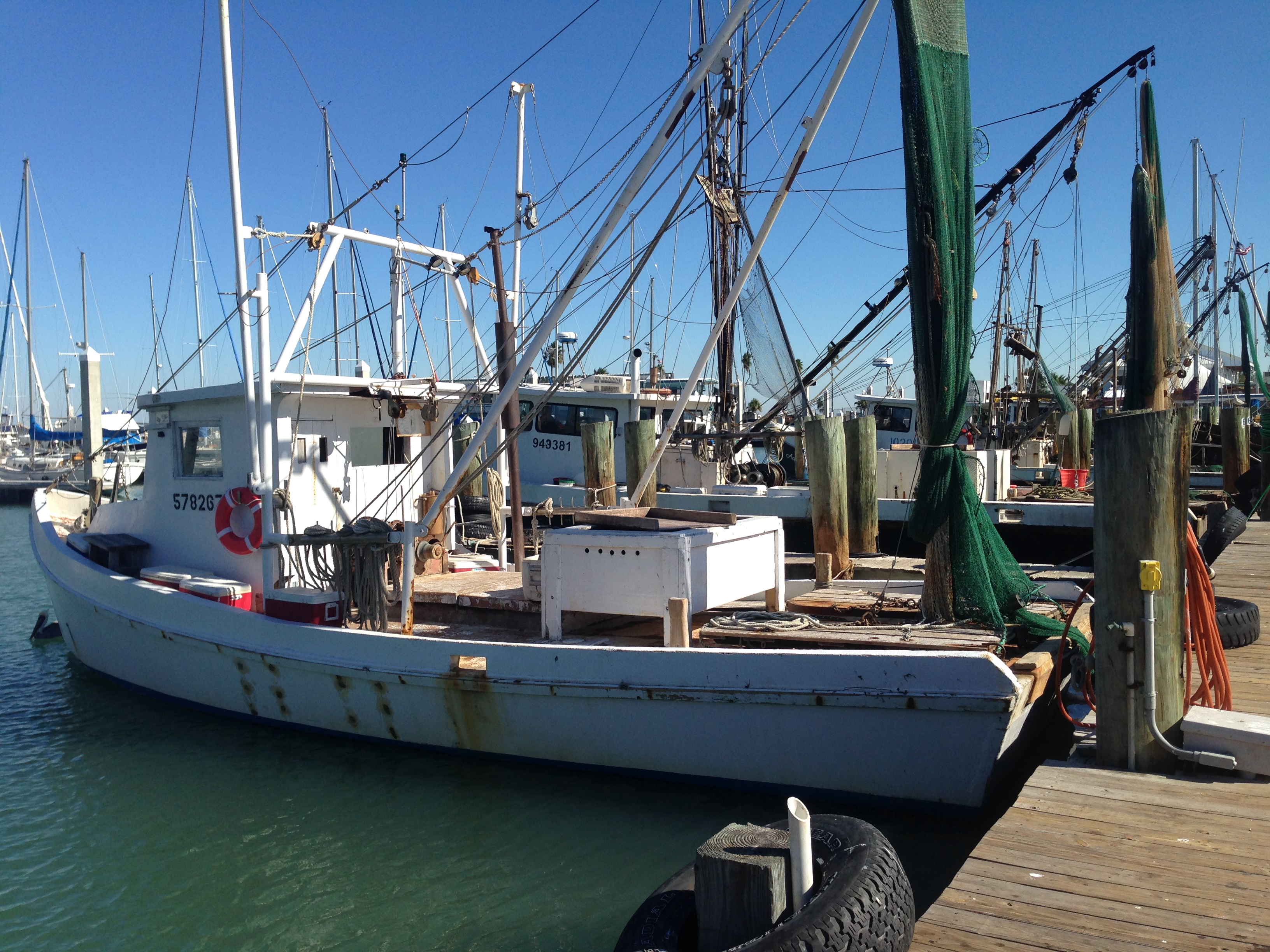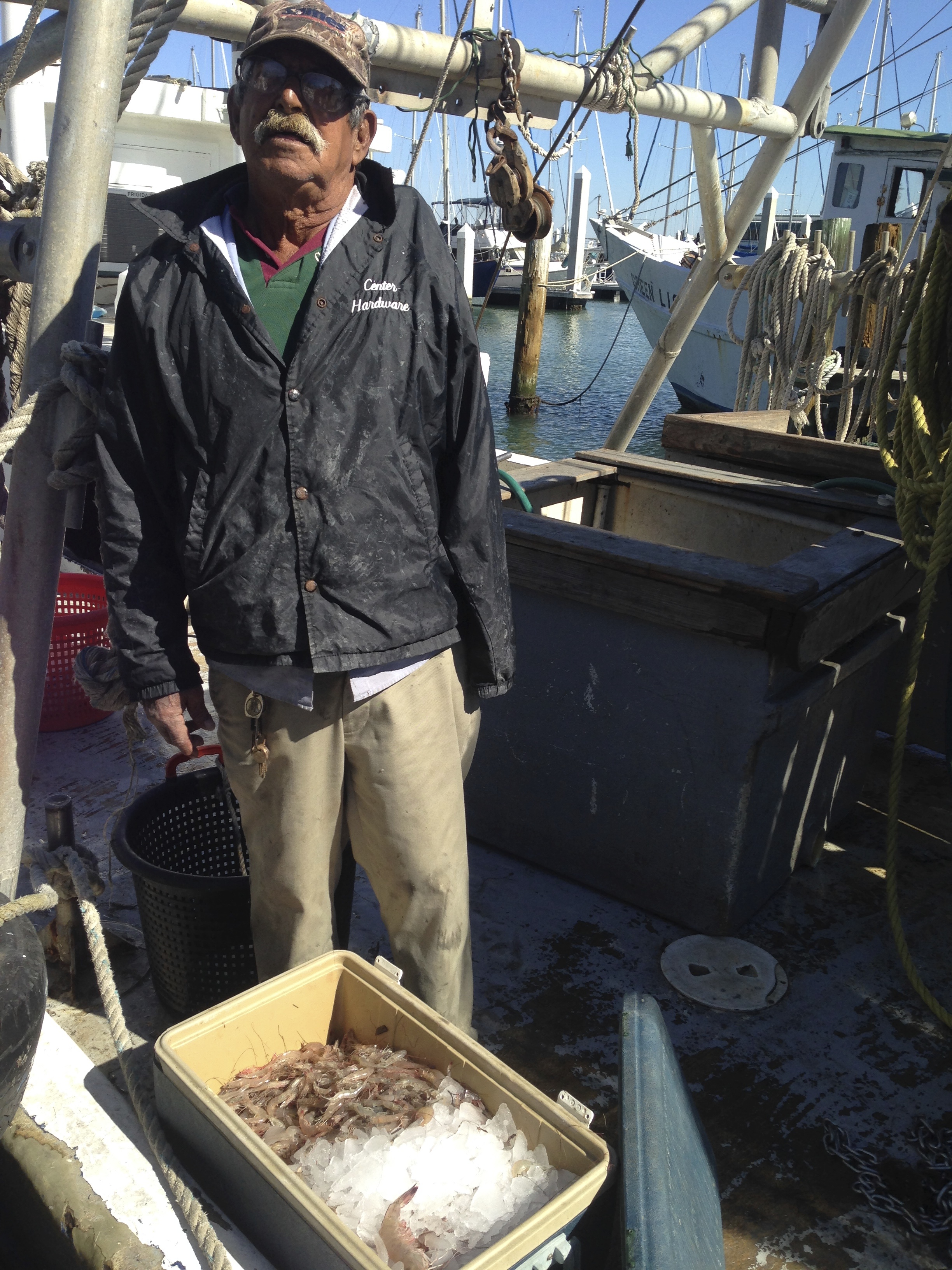 I thought a lot about those happy days as I walked slowly beside the shrimp boats this morning. I stopped and had a nice chat with one shrimper — a colorful character with a weathered face, bushy mustache, raspy voice, and one arm. Shrimping is hard work and I wondered how the one-armed man was able to manage the equipment on his boat. Somehow he did. While we were talking, a couple visiting from China stopped to buy some shrimp from him and joined in the conversation. We all had an enjoyable visit.