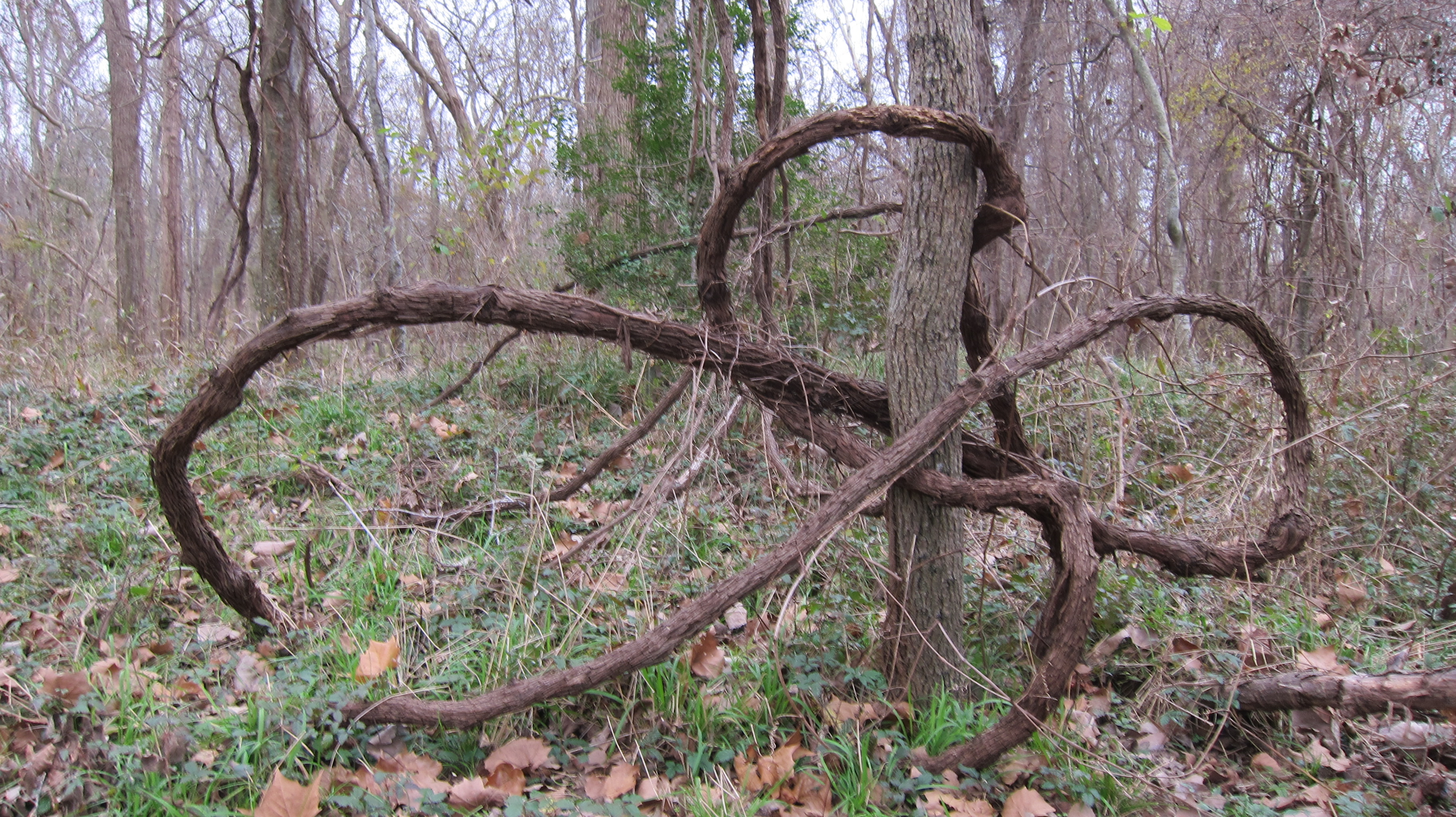 The trails at the park are fantastic. Every trail I walked was carpeted in rust-colored leaves cast off by skeletal trees patiently waiting for their new Spring wardrobes. The trails wind their way through an amazing art gallery of twisted vines and branches and giants brought crashing to the ground by storms and termites. There was never a dull moment and plenty of photo-ops every step of the way.