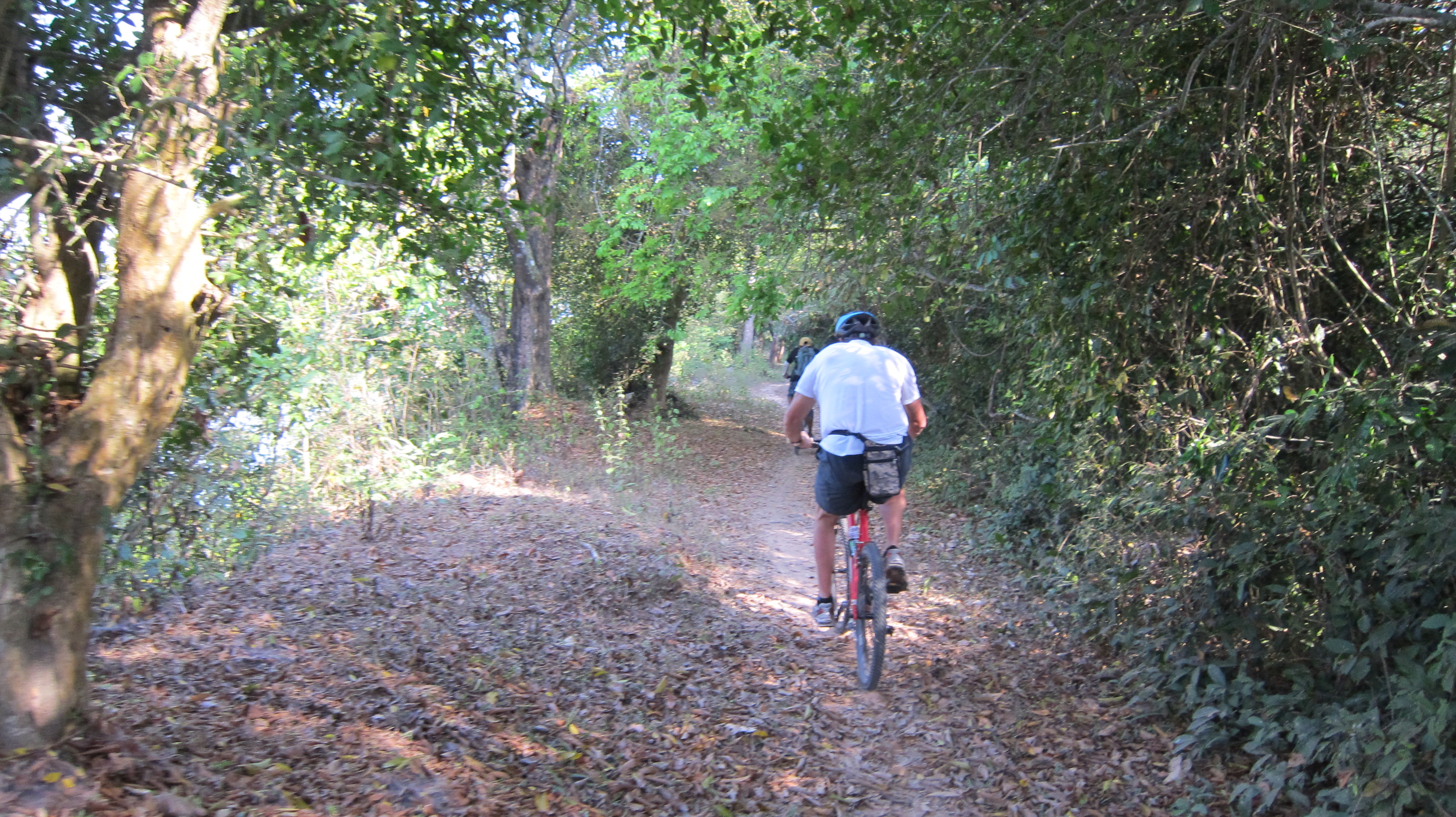 Apart from the sugar-stick sites easily accessible to tourists, the only way to see the temples still hidden in the jungle is by walking or biking down winding single-track trails. We did a 26-mile loop that took us off the beaten path and offered some fun and technical challenges. I had my first really good spill since I started biking when the edge of my handle-bar met a tree on a winding and narrow section of trail. I knew it would happen sooner or later and glad that it happened on a dirt trail instead of pavement.