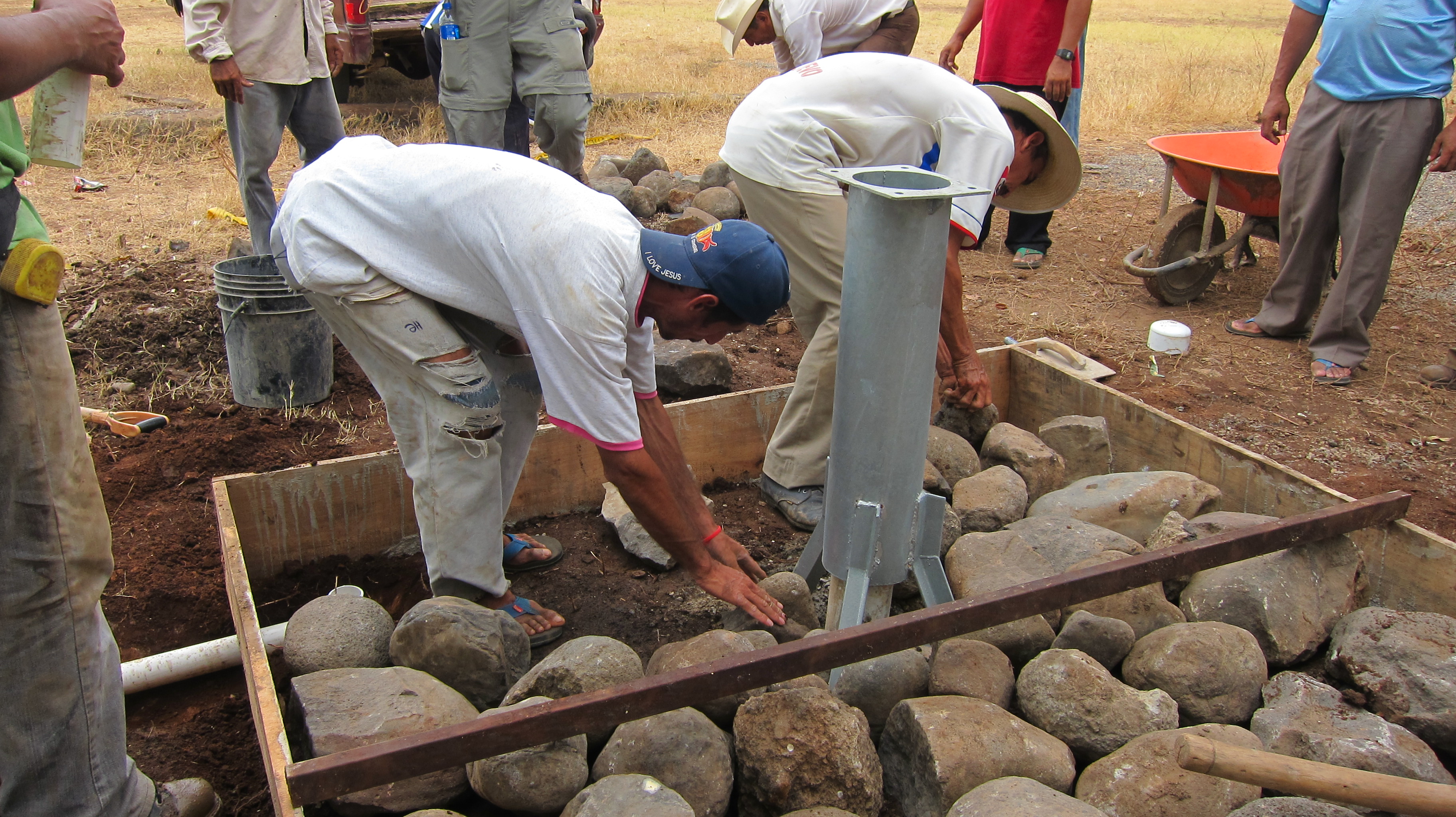 As soon as we moved the drill rig, the men of the village sprang into action. Their responsibility was to pour the concrete pad around the well housing. They wasted no time in nailing the form and preparing the pad with big rocks that act as filler and rebar. They mixed cement on the ground and ladled it by the shovel-full into the form. These men worked non-stop until the task was done. This water well is an answer to their prayers and they all wanted to play a part in completing the task.
