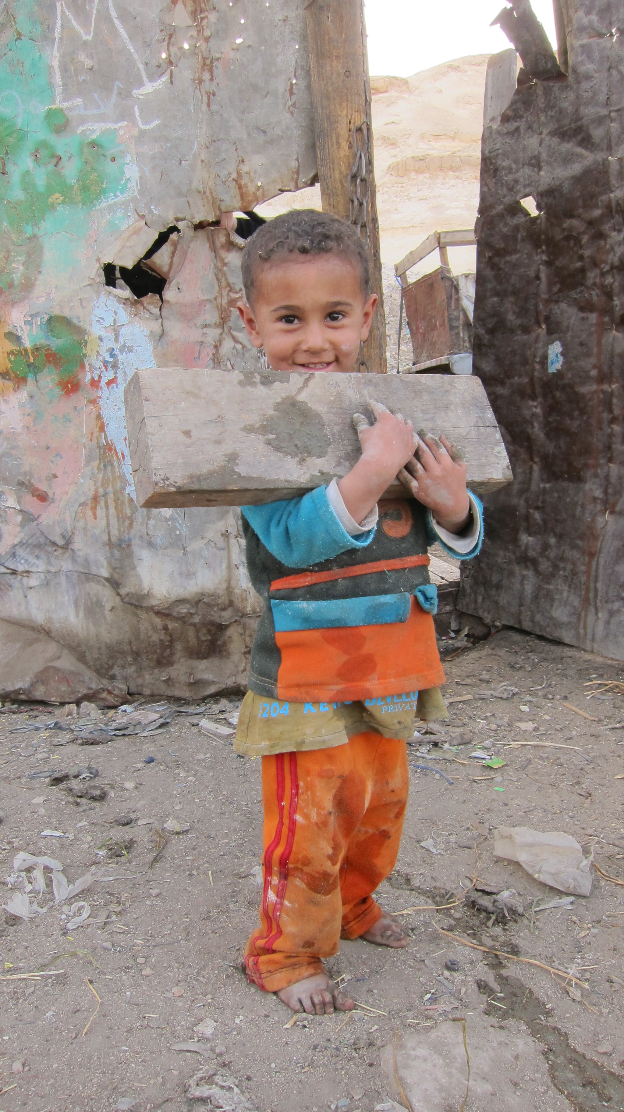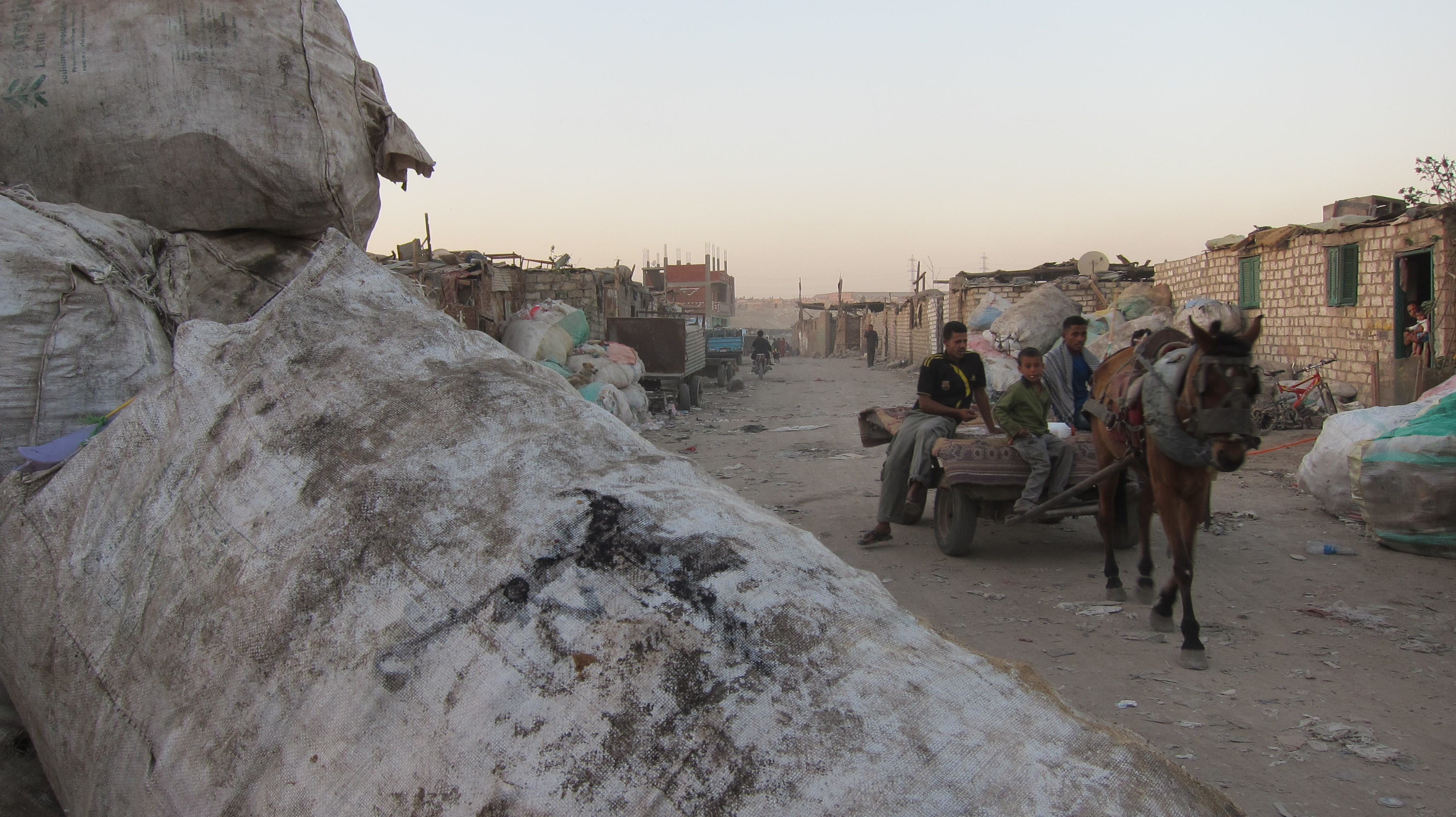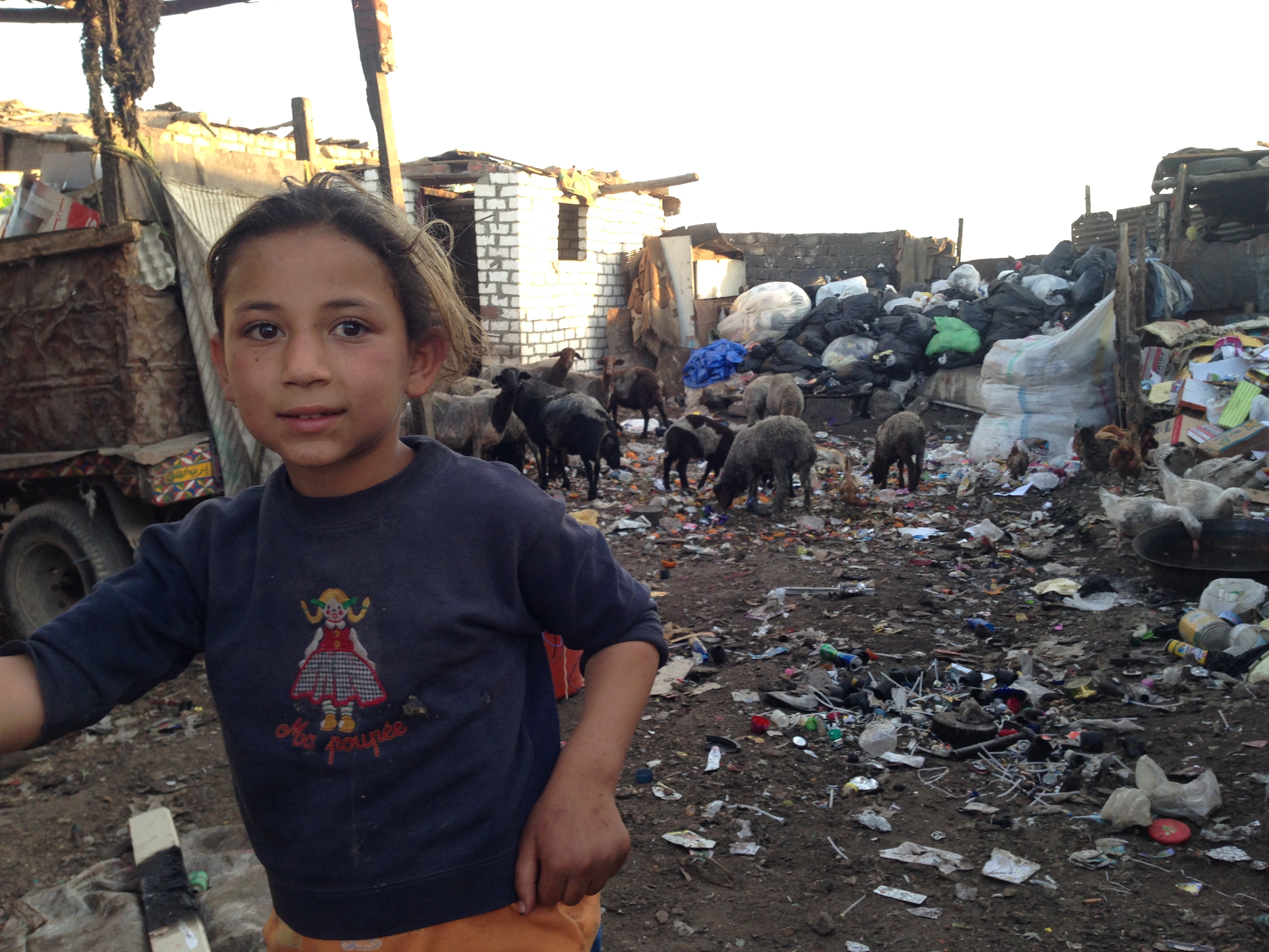 Being among the Zabbaleen is like being in an alternate universe — in a troubling place that should not exist but that does. The second we turned off the main road south of Cairo and onto the hard-packed dirt road leading to the desolate place where the Zabbaleen have staked their claims, we immediately sensed that we were entering a version of hell on earth. The road that winds through the Zabbaleen’s makeshift hovels is hemmed in by bulging bags of garbage guarded by swarms of flies. Mothers nurse their babies among this filth as kids caked in dirt entertain themselves with found junk. This is not what childhood should look like.