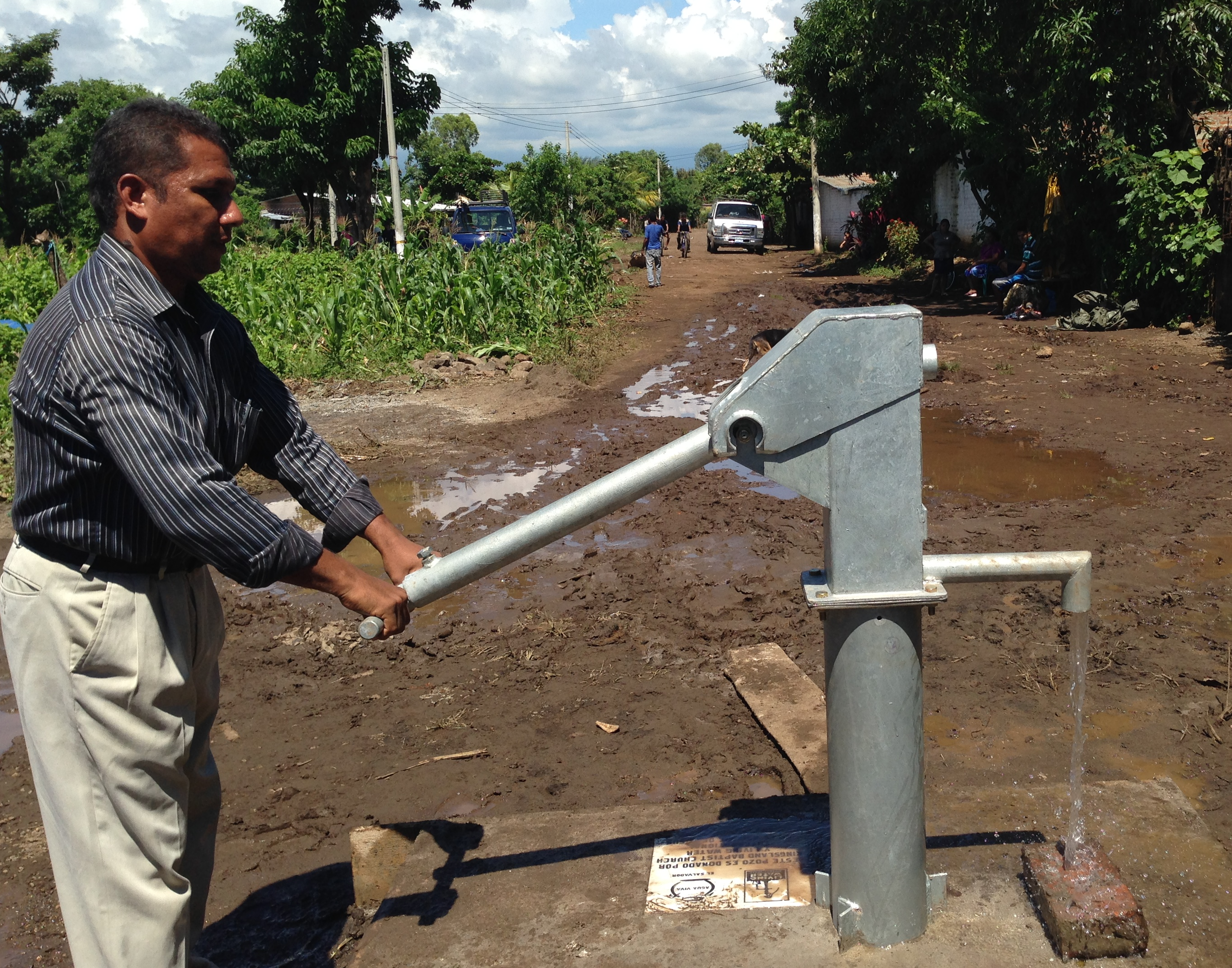 This morning we completed the water well for the people of Los Amates. For the first time this week the sun was shining bright with hardly a cloud in the sky. When we bolted on the cover to the pump and started to work the handle, we could hear water gurgling up the pipe. Within a few seconds a gush of cool, clean water spilled onto the concrete pad to the delight of everyone present. That single moment made the long days and late nights of working in the rain and humidity worth it all.