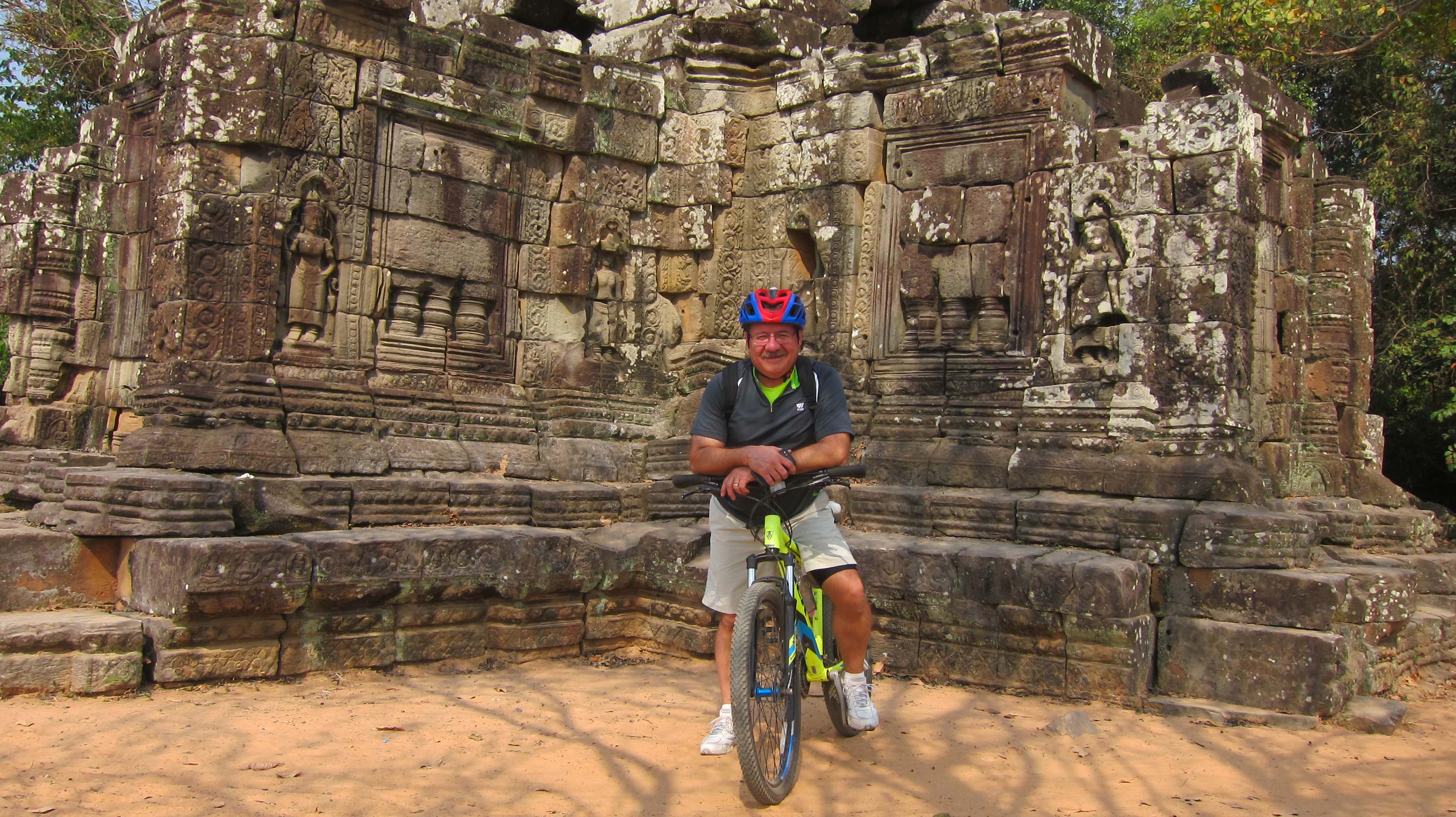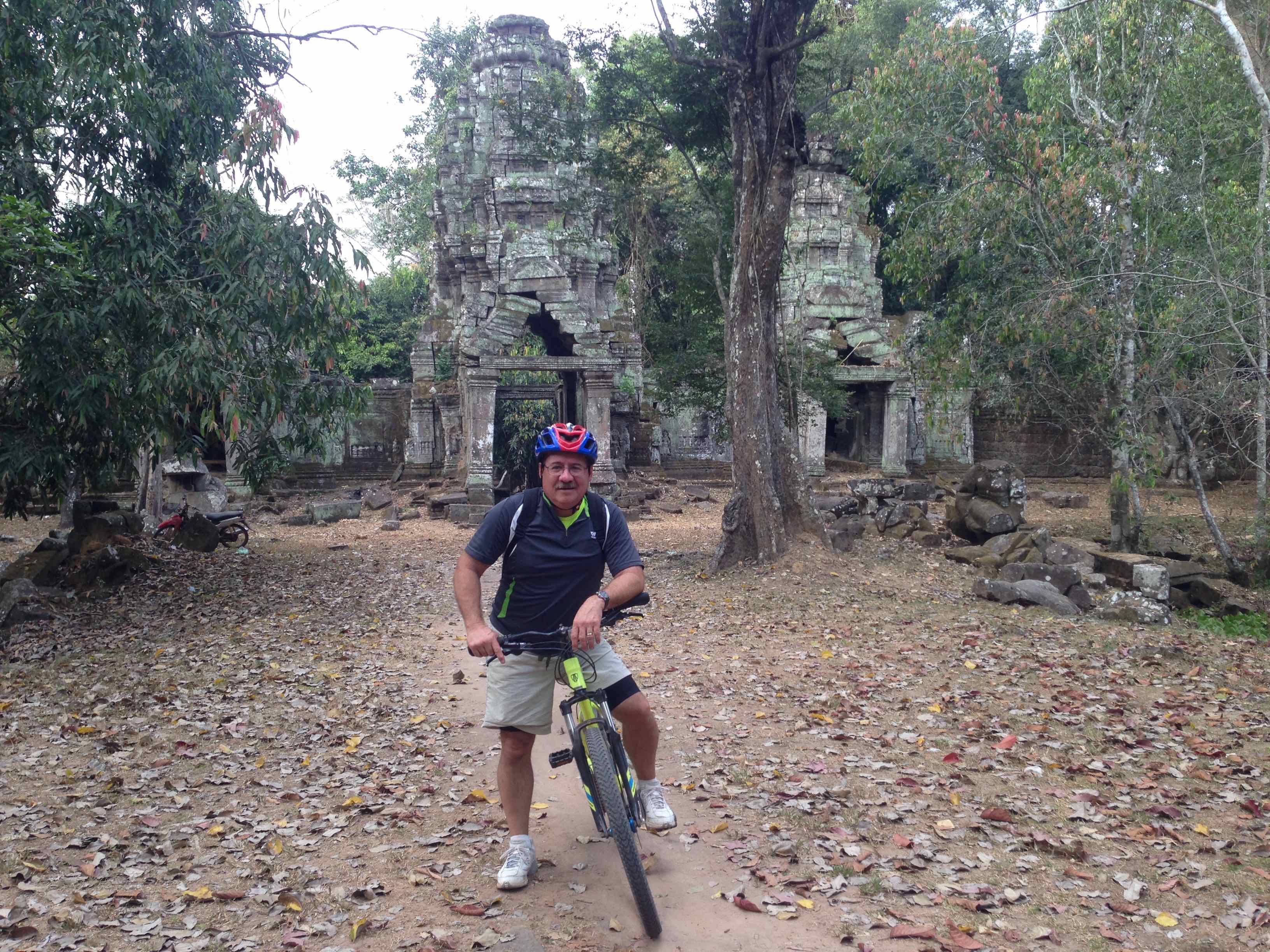 I am still fascinated by the temples of Angkor. Our team had a free afternoon today before we fly back to the States tomorrow, so I decided to head into the jungle to explore Angkor’s hidden temples — places far off the beaten tourist path. This is my second excursion into the jungle on a mountain bike. I hired a guide to lead me down the winding and sometimes technical single-track trails that lead to some amazing temples. Over the course of 24-miles we stopped at several of these sites that are under constant threat of being reclaimed by the jungle.