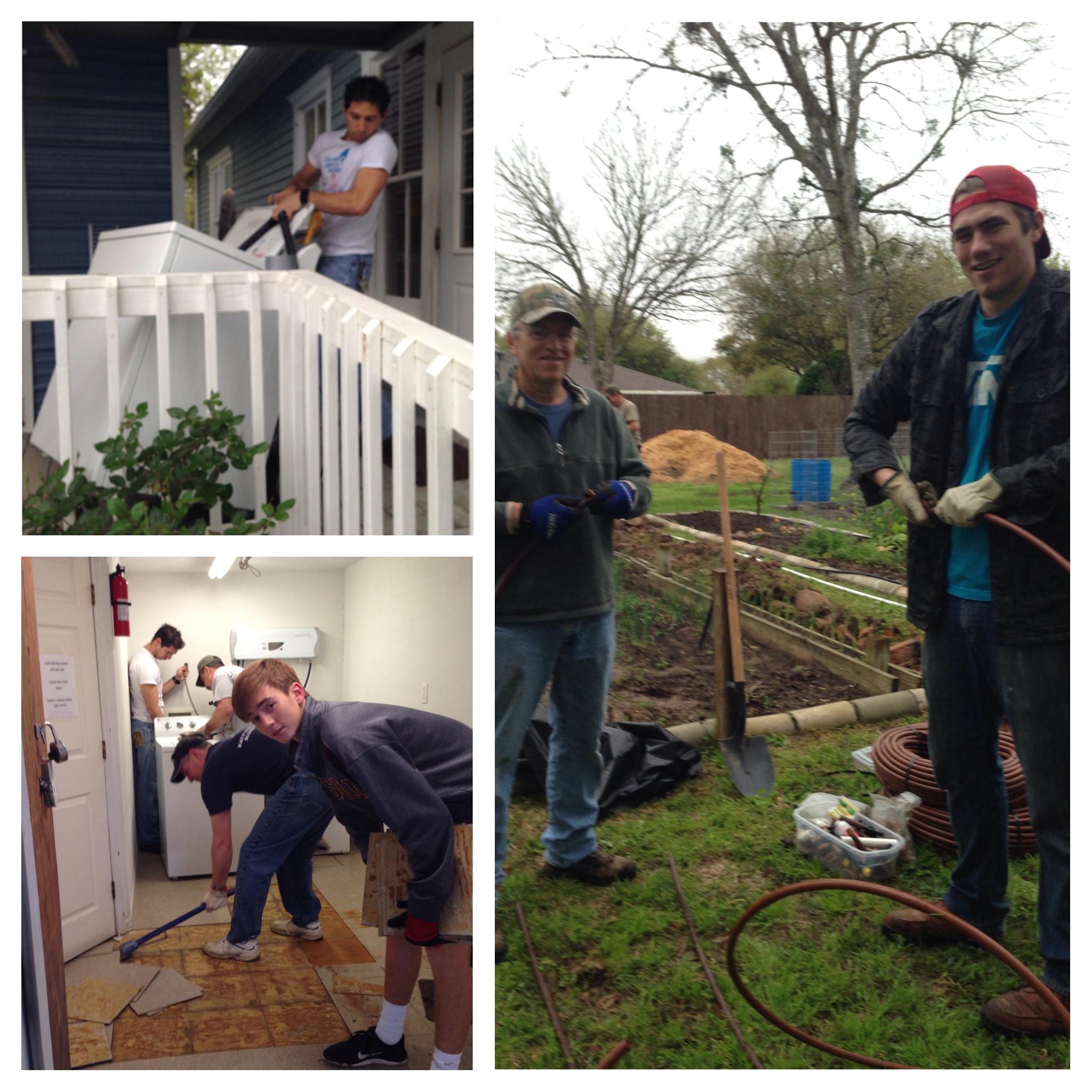 This morning, we had our very first Band of Fathers shared mission initiative at The Manna House in Brookshire. Although rain was in the forecast, every one of our men was determined to serve in spite of the weather. So, we met at Manna House this morning to replace the irrigation system in the garden, to install irrigation to the fruit trees we planted during Caring for Katy, to install new flooring and shelving in their laundry room, and to clean out rain gutters. We did all of this under gray skies. The rain held off until we loaded the last tool into our Go Beyond van.