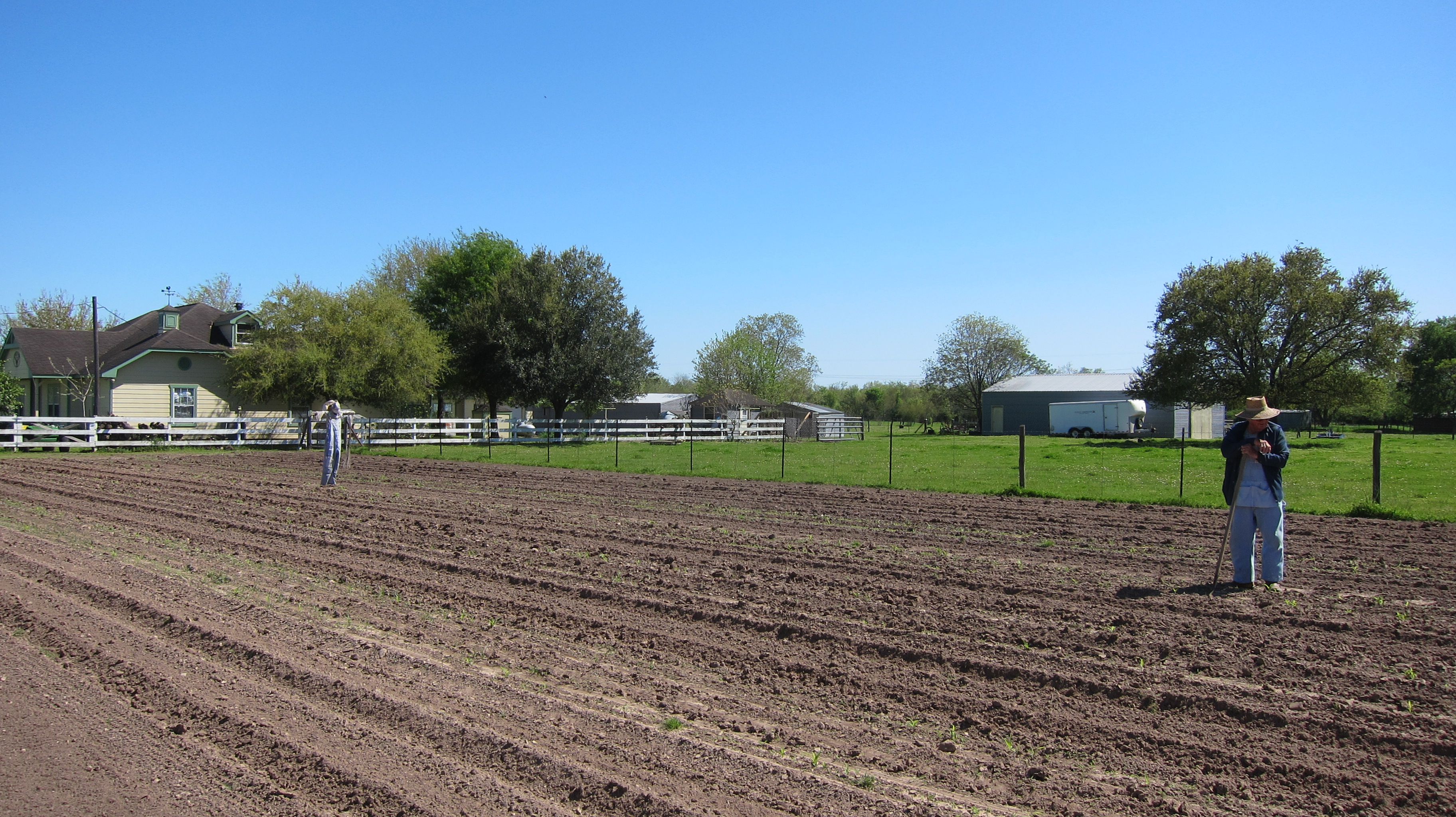 One of my favorite moments was when we saw three scarecrows in a large garden next to a house on a backroad. When I stopped to snap a pic of the scarecrows, the middle scarecrow moved. That middle scarecrow was actually an old farmer out tending his garden. We all had a good laugh and a great conversation about gardening. He too has to battle weeds and also some pesky birds. Before we left, the old farmer invited us to come again. “We always harvest more than we can eat,” he said. “And we’d be happy to share some of our bounty with you.” As we waved goodbye, I smiled. It’s great to live in Texas, weeds and all.