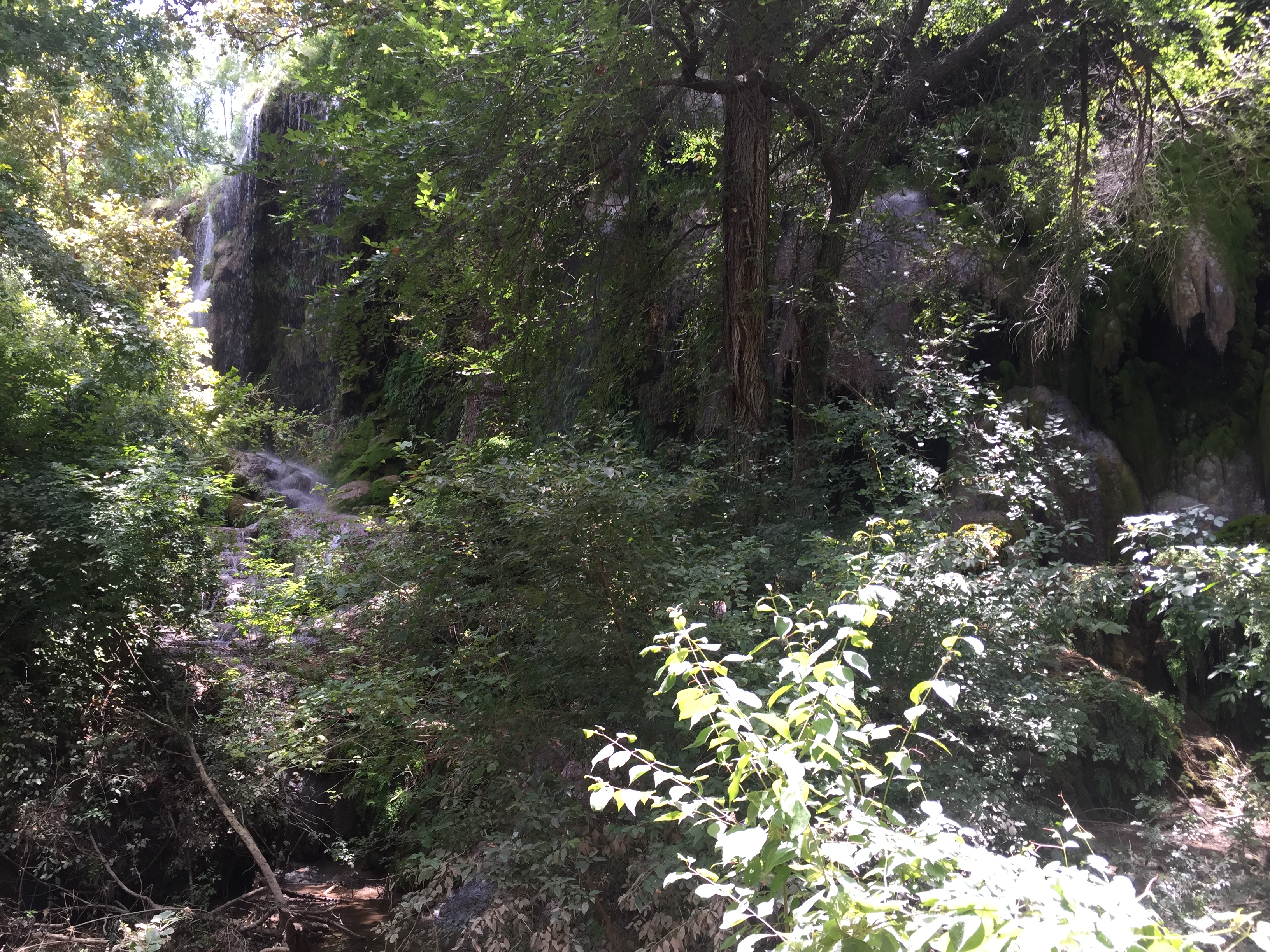 These falls, fed by Gorman Springs, are absolutely beautiful. Cascading down from a 60-foot high limestone cliff, the calcium deposits in the water have created what look like window drapes. These formations are covered by green moss and ferns, adding a calming beauty to the picturesque scene. We sat in silence for the longest time, enjoying the sound of the falls, the shade of the trees, and a hint of a breeze. This, I thought to myself, is good medicine.