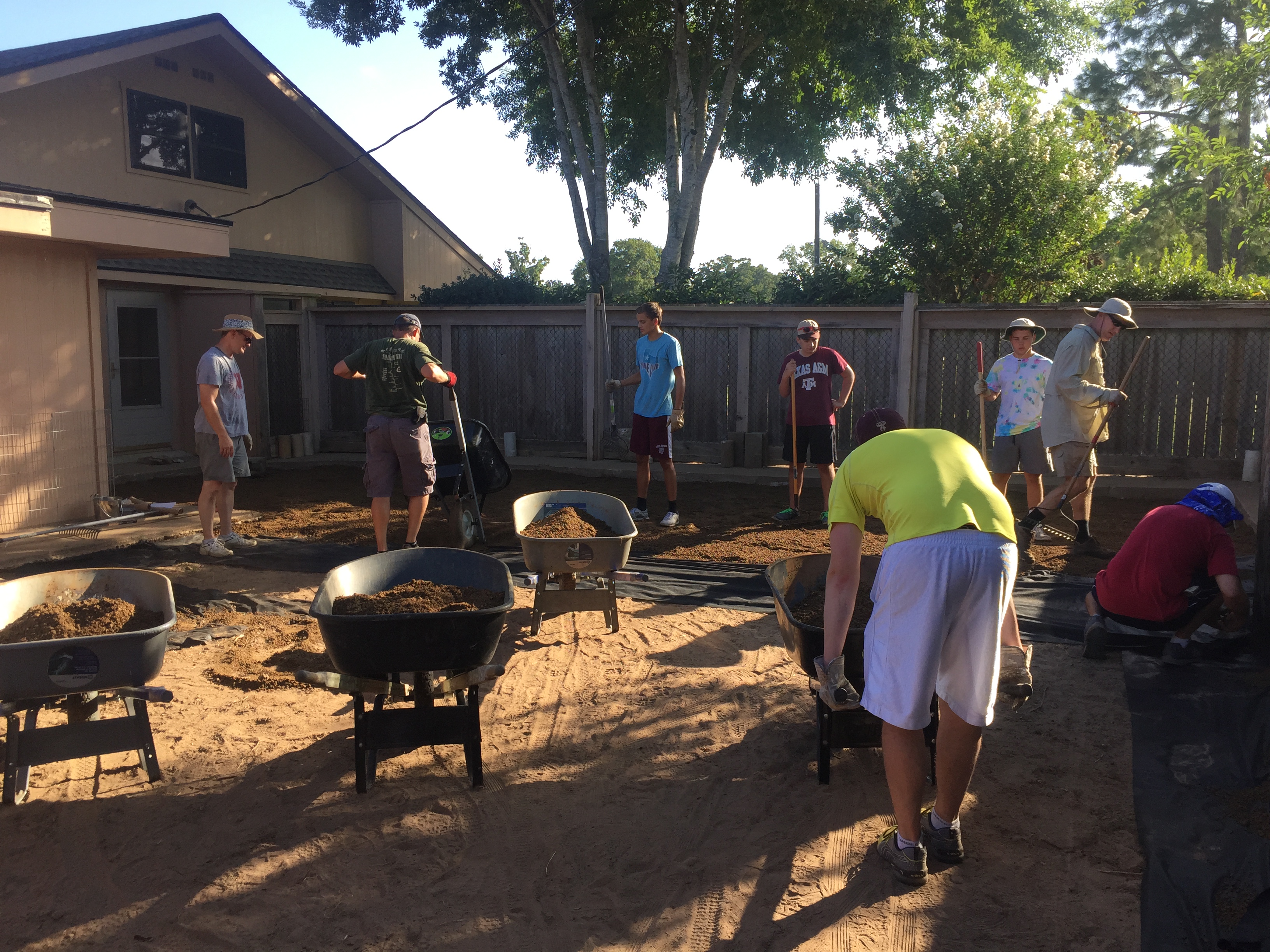 We recently had our second shared mission initiative since starting our group. Our team of fathers and sons did some landscaping work for Cathy, a sweet lady in Brookshire who is battling cancer. The heavy rains we experienced in Texas in June flooded Cathy’s home more than once, creating lots of additional problems for her.