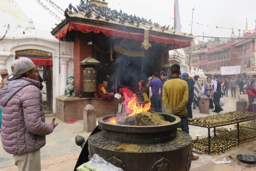 There seems to be a tolerance among the world views represented here even though they may be diametrically opposed to one another. Today, I watched Tibetan monks doing a dance that represented self-denial adjacent to Bouddhanath Stuppa, the holiest Tibetan Buddhist temple outside Tibet. Shorty after I watched smoke rise into the sky from a Hindu cremation site.
