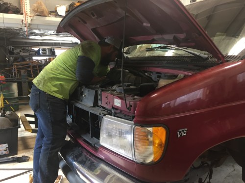 Our daily routine consisted of being the pit crew for GraceWorks Alaska, a ministry committed to making Christ known in Anchorage and beyond. This ministry has a fleet of vehicles that will transport almost a thousand volunteers who will come to serve here this summer. Our task — to service every vehicle and ensure it is in good running order.