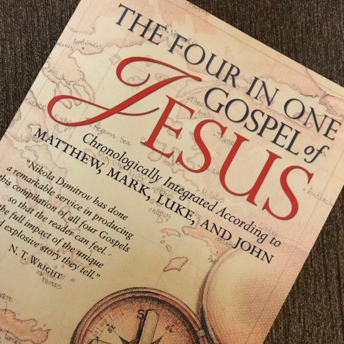 In anticipation of my new reading plan, I purchased a copy of “The Four In One Gospel of Jesus” by Nikola Dimitrov. This volume, based on the King James text, weaves the events recorded in the four Gospels into a single chronological narrative that enables the reader to see Jesus in a dynamic light. I told a friend that it felt like I was reading the Gospels for the first time.