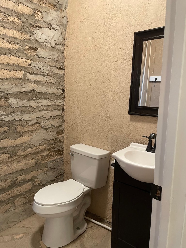 The desert is a harsh environment and has taken its toll on the little church building. Although the structure is still solid, it was time to address a few things, including updating the bathroom, addressing the front doors that opened only partially, adding a small meeting room, and adding food pantry storage.