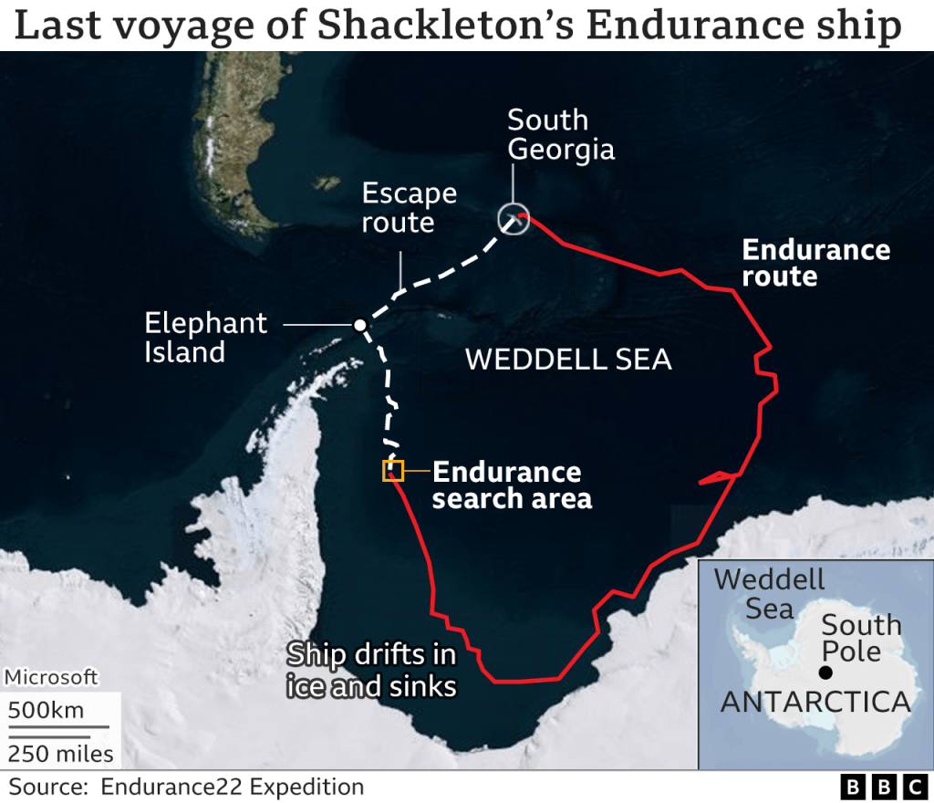 One hundred and seven years after the Endurance sank into the icy depths of the Weddell Sea off the coast of Antarctica, the wreckage of the ship belonging to Sir Ernest Shackelton has been found. Shackleton lived during the Heroic Age of Antarctic Exploration, the period from 1897–1922 during which sixteen major expeditions from eight countries focused on the Antarctic continent.