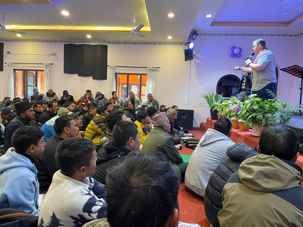 We had our first meeting in Kathmandu where 350 men gathered at Bethlehem Church. Seated on the floor, the men packed the room. We provided each man with a copy of our first two discussion guides — Men of Courage and Men of Character. These guides are designed for men to use in weekly small group settings.
