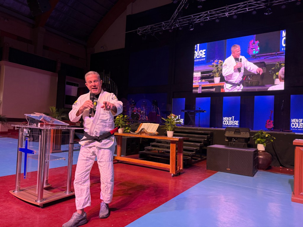 Gil spoke about what it means for men to be made in the image of God and highlighted three things the Lord has placed within the heart of every man: a beauty to rescue, a battle to fight, and an adventure to live. As part of his message, Gil—a three-time Brazilian Jiu-Jitsu World Champion and recent black belt recipient—and Brad stepped onto the mat for a live BJJ demonstration.