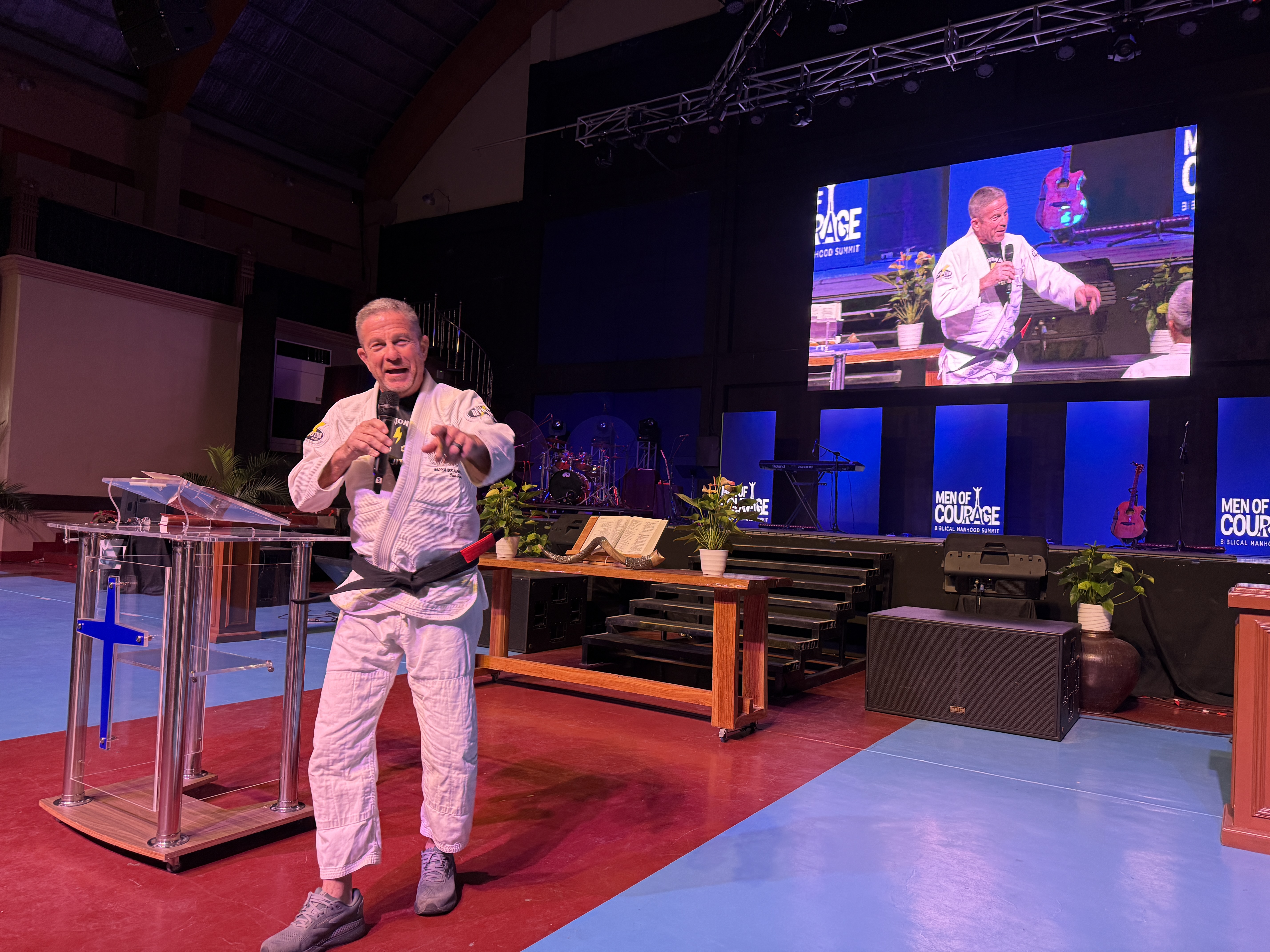 Gil spoke about what it means for men to be made in the image of God and highlighted three things the Lord has placed within the heart of every man: a beauty to rescue, a battle to fight, and an adventure to live. As part of his message, Gil—a three-time Brazilian Jiu-Jitsu World Champion and recent black belt recipient—and Brad stepped onto the mat for a live BJJ demonstration.