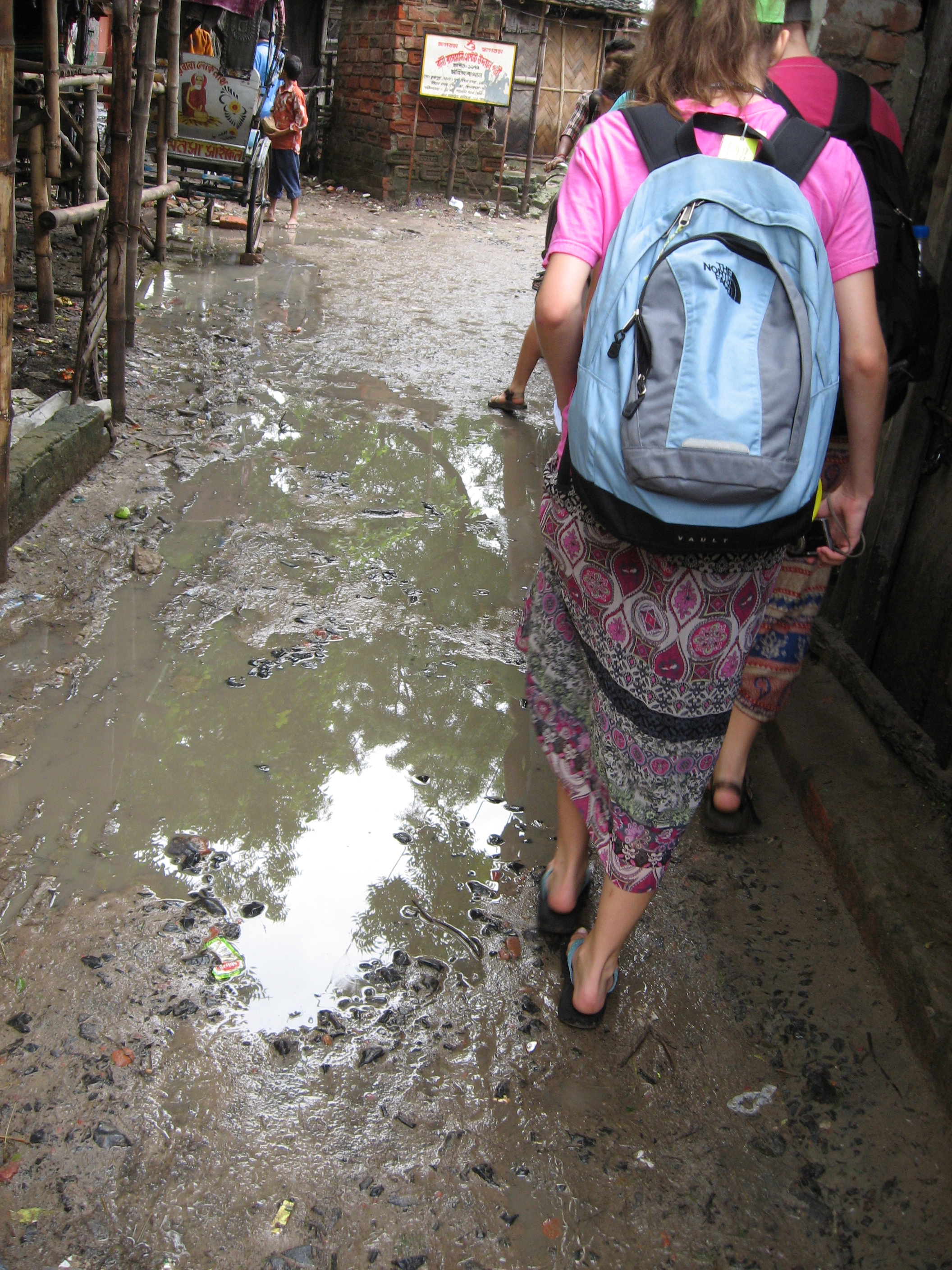 Early this morning, the boys on our team headed back to the slum school in the village of Udayan Pally where they continued their work with the children of Bengali Hindus. The path to New Hope School is still coated with a film of slick and slippery mud that makes walking a challenge. But it’s worth taking every step to the school just to see the smiles on the faces of the children who are finding new hope there. Our boys are fully engaged with their assignment and are taking advantage of every opportunity to chat with curious onlookers about why we have come. One thing is certain, the villagers are as excited about our presence here as the children. For the majority of these poor families, their children will be the first to learn how to read and write in both Bangla and English. And, their children will be the first in their families to hear the story of Jesus and His love. Pastor Rudra’s curriculum includes teaching the story of Jesus in a way that children can reproduce it at home — through stories and songs.